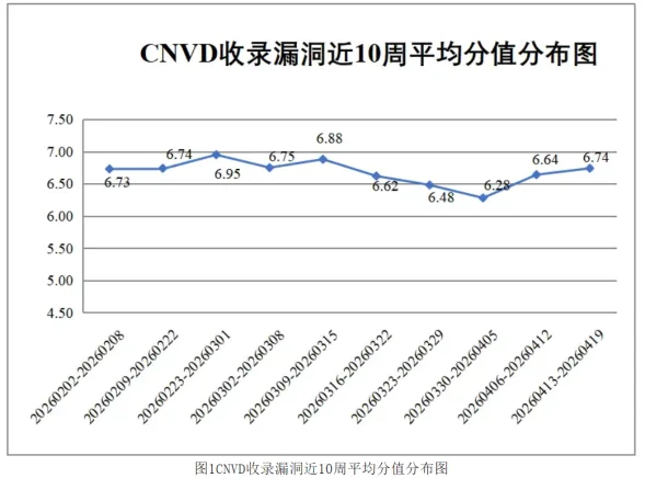 根据国家信息安全漏洞共享平台(CNVD)2026年4月13日至2026年4月19日统计、收集、整理信息安全漏洞532个,其中高危漏洞278个、中危漏洞227个、低危漏洞27个、漏洞平均分值为6.74。涉及0day漏洞400个(占75%),其中互联网上出现“Bank Locker Management System SQL注入漏洞、e-Diary Management System SQL注入漏洞”等零日代码攻击漏洞。涉及党政机关和企事业单位的漏洞总数2973个,与上周(6548个)环比减少55%。