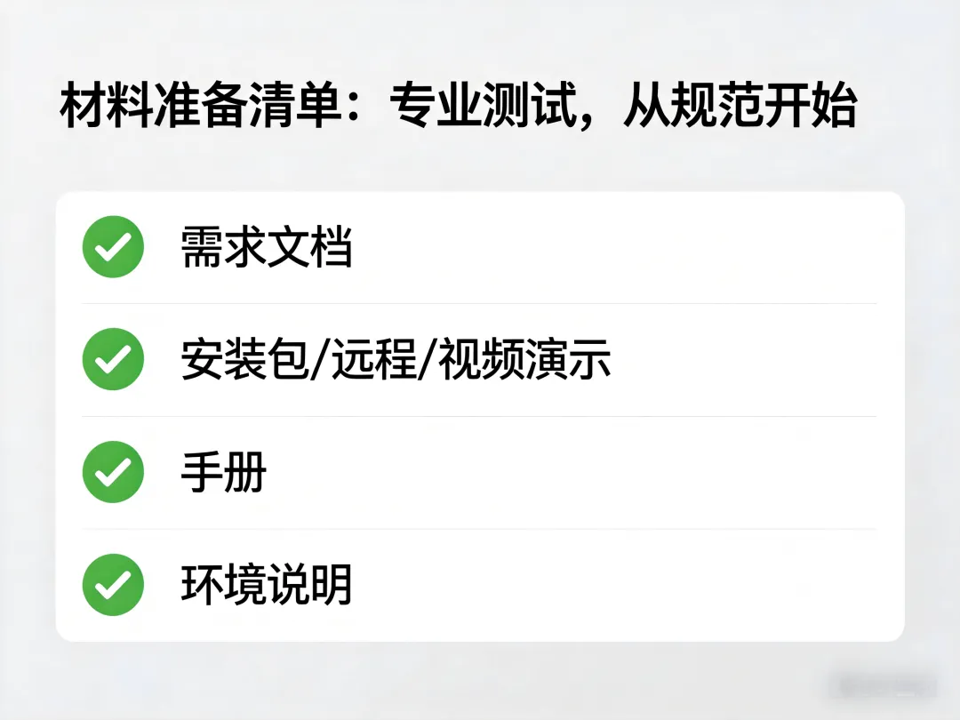 为了保证测试的严谨性和客观性,客户需要配合提供以下“四大件”: