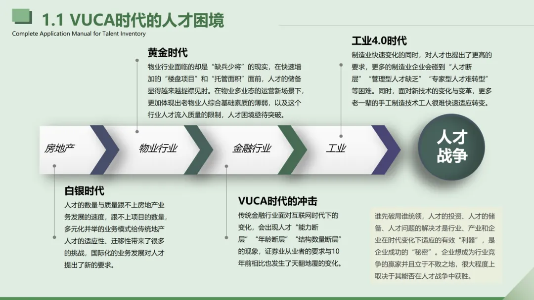 VUCA 时代企业面临人才断层、结构失衡、关键人才流失,人才成为核心竞争力。