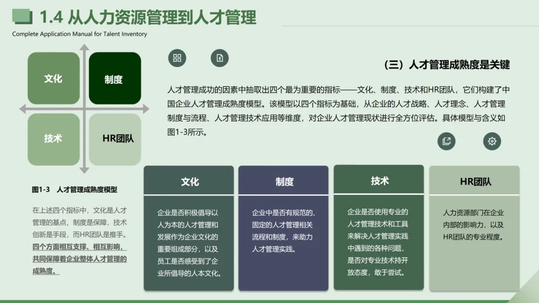 本手册是155 页全流程人才盘点实操宝典,覆盖从基础认知、能力建模、评估工具、九宫格应用、校准会运营,到盘点后组织与个体激活、数字化赋能、风险防控全链条。以业务为导向、以工具为支撑、以落地为目标,提供可直接套用的流程、模板、方法与案例,彻底解决 “不会盘、不敢盘、盘完没用” 的痛点,是企业搭建人才体系、HR 提升专业能力、管理者打造高效团队的必备实战手册。