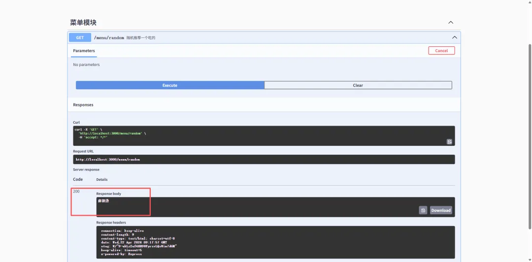 👉 接口名字也变成“随机推荐一个吃的”