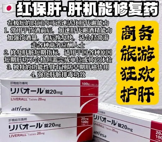 日本红保肝·肝机能修复药——商务应酬的护肝神药 酒精可以引起很多肝脏疾病:酒精性肝炎、酒精性肝纤维化,甚至酒精性肝硬化的问题。因为乙醇和衍生物乙醛可以直接造成肝细胞的脂肪变,发生肝脏疾病的问题。 主治:保肝解酒,在生活上的各种应酬等引起对肝脏的损害,帮助肝脏的修复,改善积累脂肪的作用,阻止肝硬化的进展和肝炎,同时有抑制肝癌的作用,改善肝脏功能。 用法:一日三次,一次一粒。 为了生活,每日应酬不断,每天都是醉醺醺回家,不仅老婆孩子埋怨,自己的肝功能也受到损害,身体难受,心里更难受!! 现在你可以应酬前服用,服用后再喝酒,可以让你酒劲儿减低,你会比平时喝更多。也可以在应酬结束后服用,服用后,能有效减低头痛,眼花,保护好肝脏。