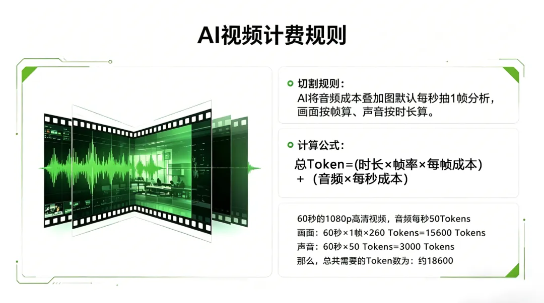 总Token = (时长×帧率×每帧成本)+(时长×音频每秒成本)