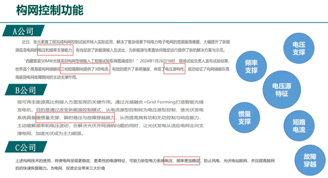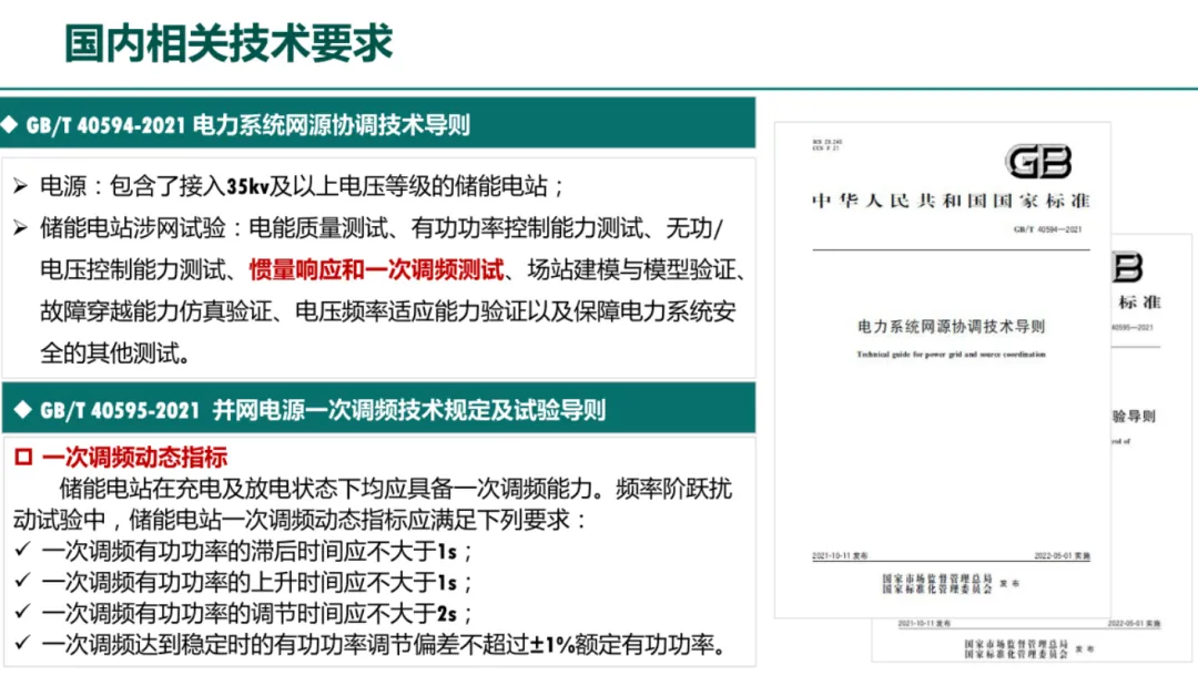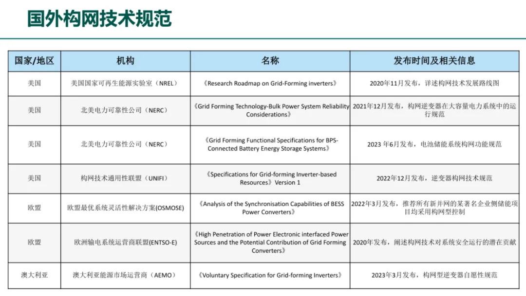 国内外已形成明确技术规范:国外要求 5ms 内响应相位跳变、电压阶跃,具备低短路比稳定运行能力;国内 GB/T 40594、GB/T 40595 等标准明确储能一次调频、惯量响应、故障穿越等硬性指标,电化学储能接入标准新增构网相关条款,国家与地方政策强制或鼓励新能源配储加装构网型装置。