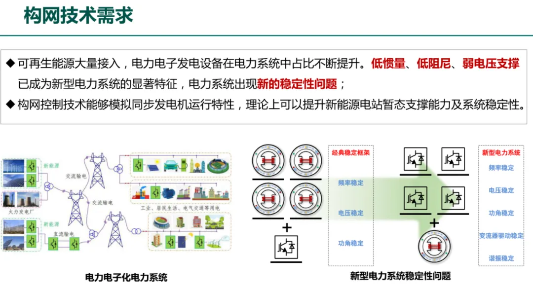 新型电力系统火电占比降至 30% 以下、新能源占比超 70%,低惯量、低阻尼、弱电压支撑引发宽频振荡、故障脱网等稳定问题,构网控制是破解关键。它能提供瞬时惯量支撑、3 倍短路电流、5ms 级快速响应,主动稳压稳频,提升弱电网与高海拔场景系统强度。