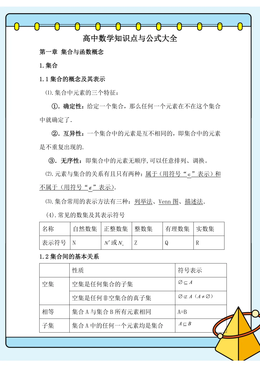高中数学三年知识点大全(可打印)