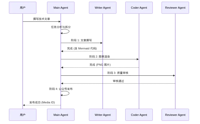 | 角色分工 | main/writer/coder/reviewer 各司其职 | 专业化、质量可控 |