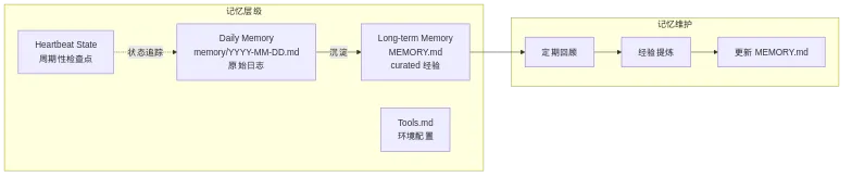 | 记忆系统 | MEMORY.md + daily notes + HEARTBEAT 机制 | 长期上下文、主动提醒 |