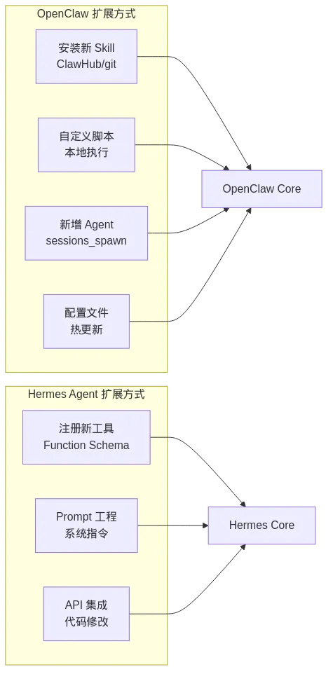 | 扩展维度 | OpenClaw | Hermes Agent |