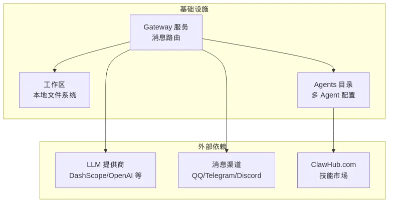 | 技能生态 | ClawHub 技能市场、本地技能、可热插拔 | 扩展性强 |