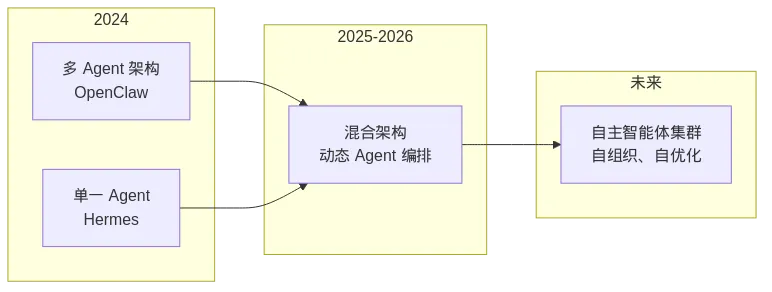 | Agent 协作 | 固化角色分工 → 动态编排 | 单一 Agent → 临时子任务 |