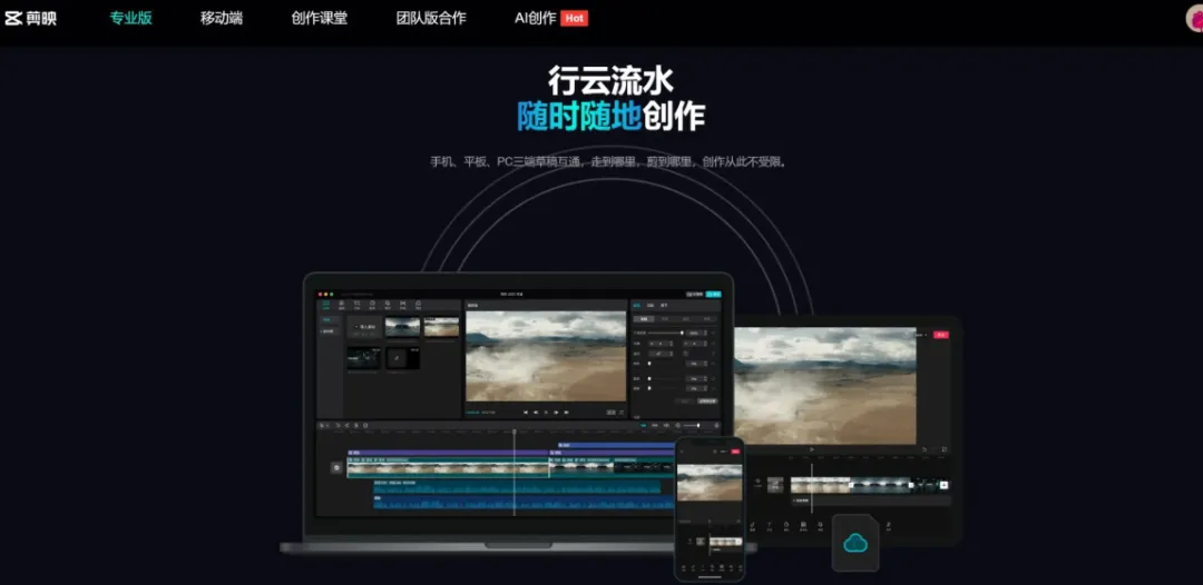 官网改编介绍:剪映AI专业版是字节跳动推出的全能AI创作工具,提供AI文字成片、自动剪辑、智能字幕、AI配音、数字人播报等功能,还支持画质增强、人声分离、智能抠像、多机位剪辑,完全免费,适配自媒体、日常记录等多场景创作。