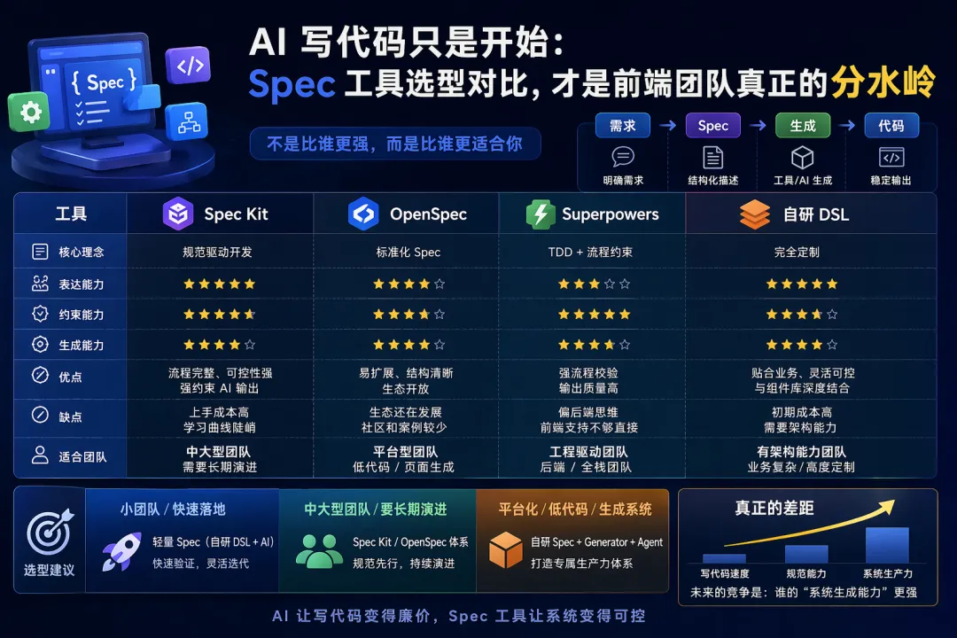 AI 写代码只是开始:Spec 工具选型对比,才是前端团队真正的分水岭