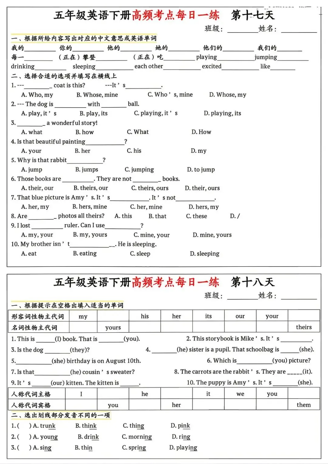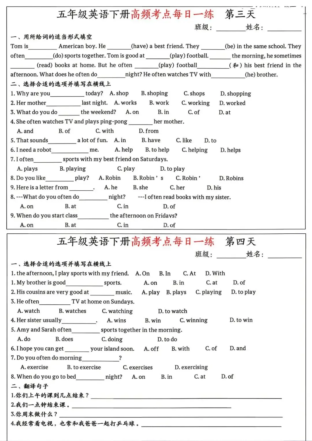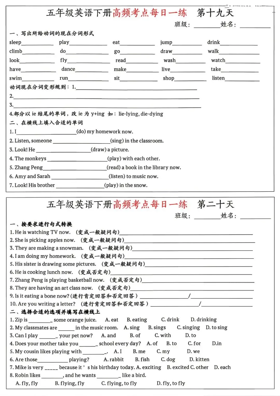 26春五年级下册英语期中复习14天冲刺-电子版可打印