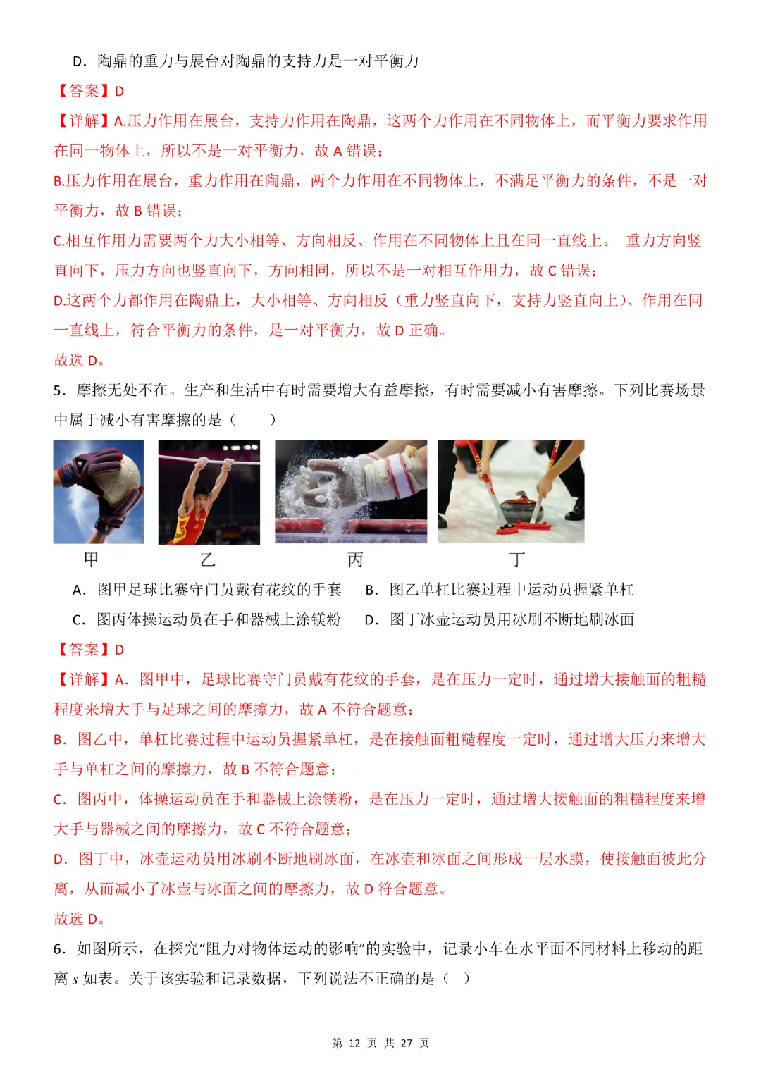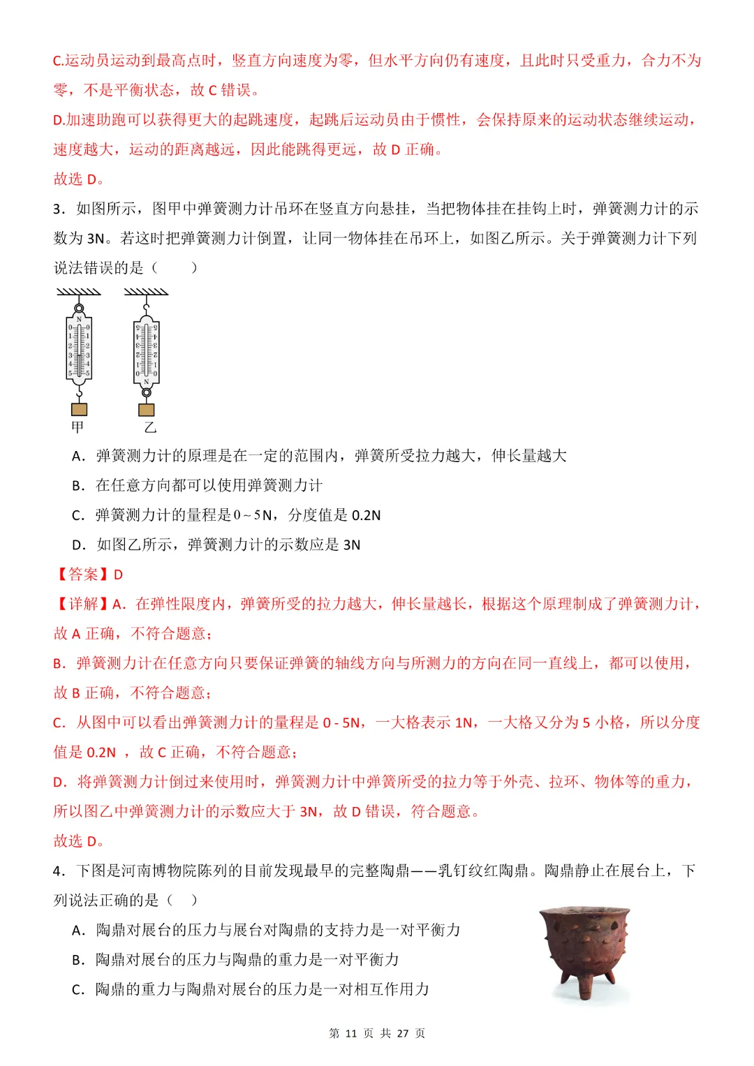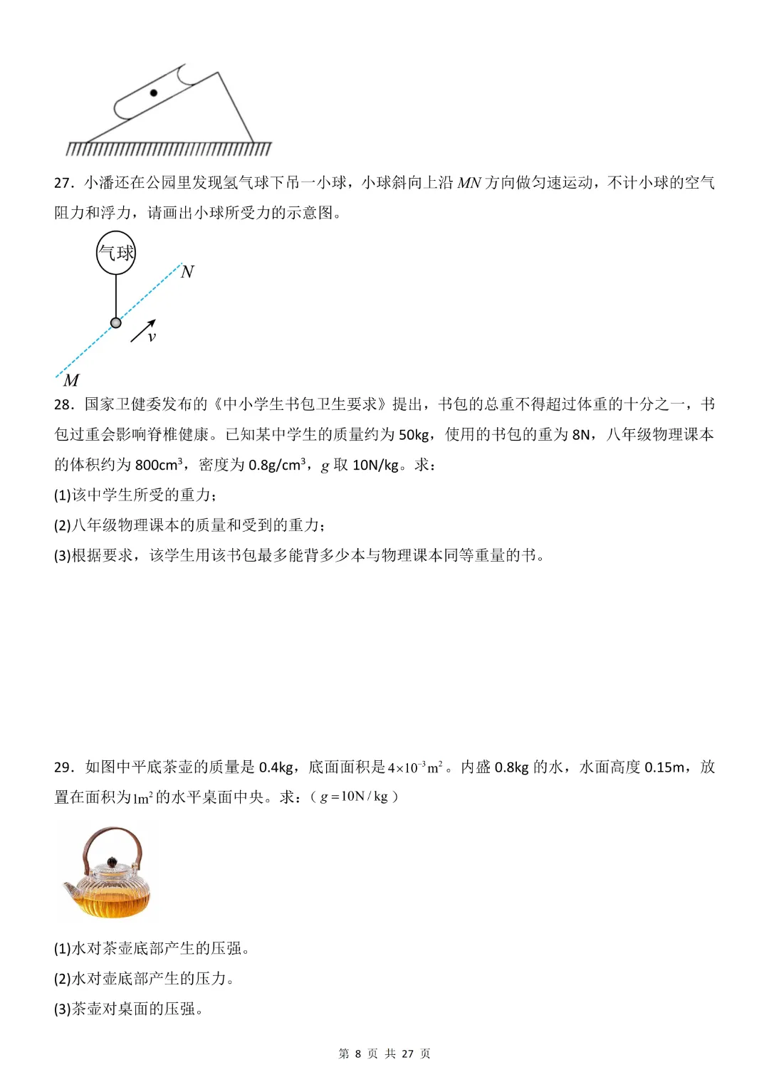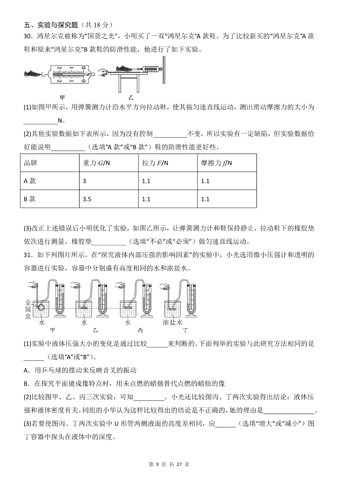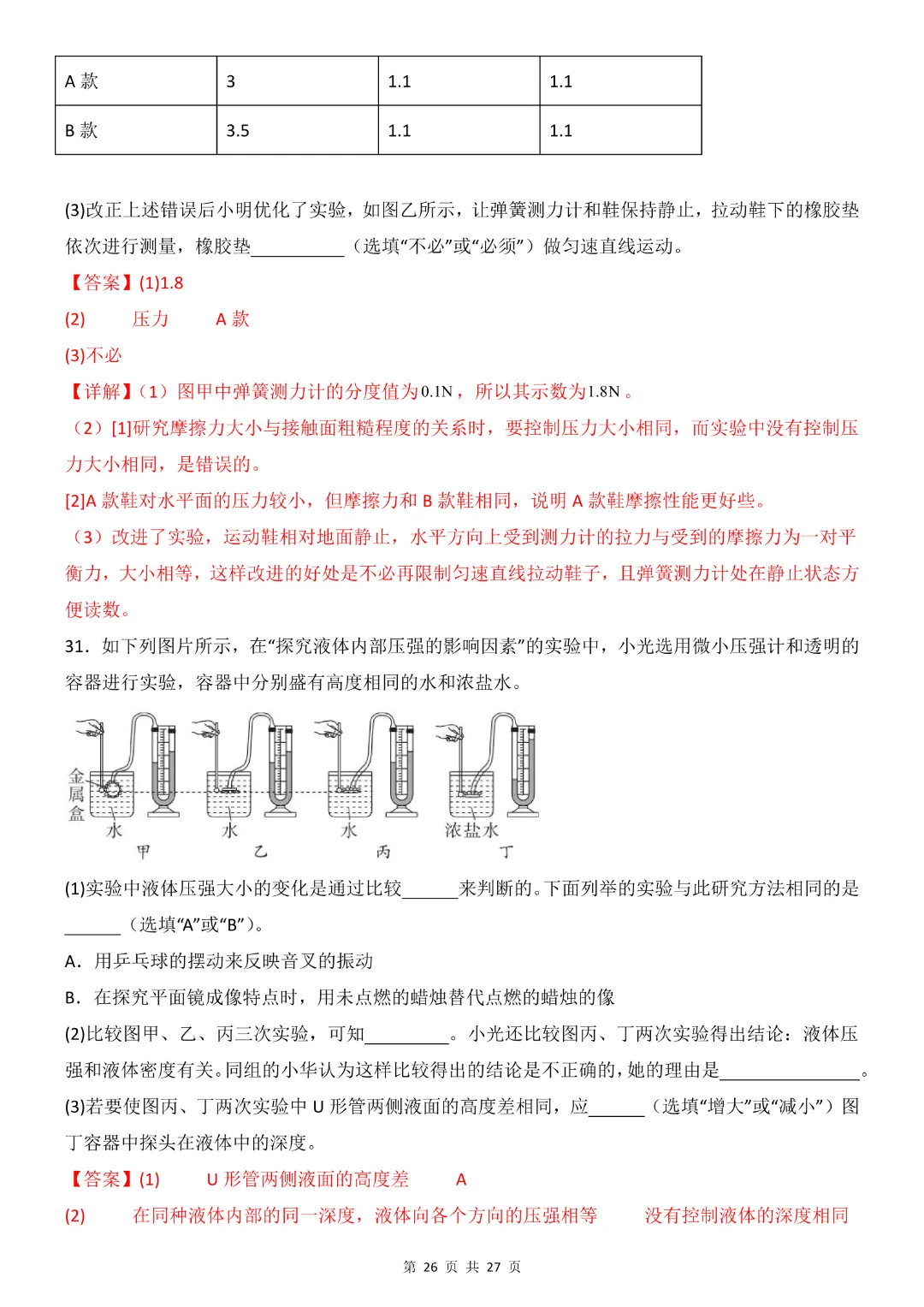 26年八年级下册物理·期中模拟卷(教科版)完整高清电子版可打印