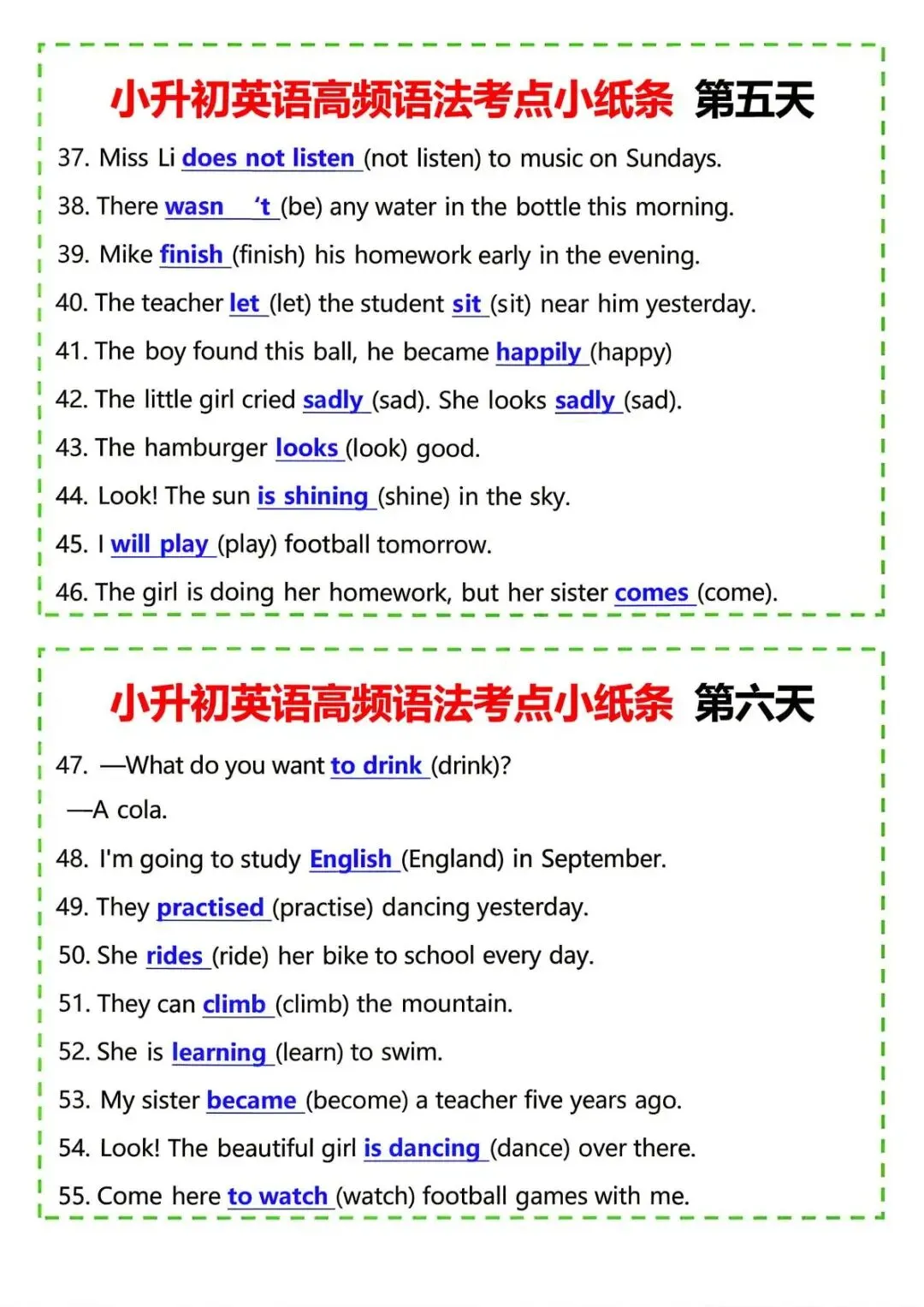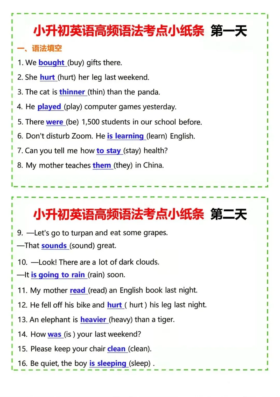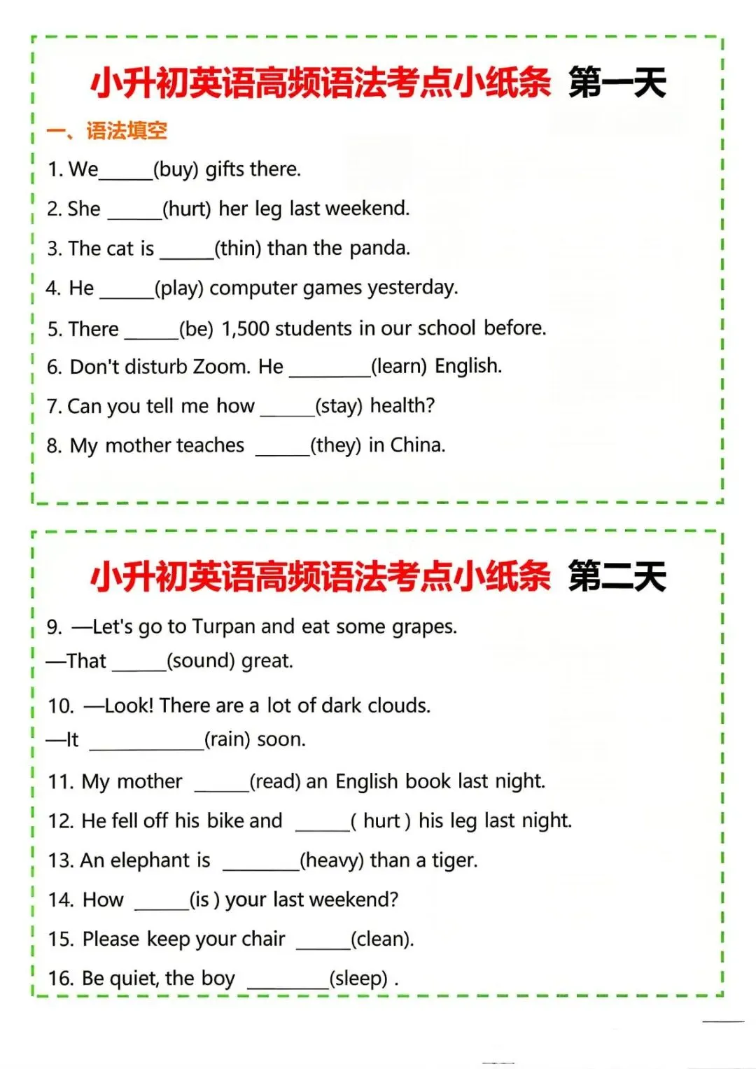 26春六年级下册英语期中复习14天冲刺-电子版可打印