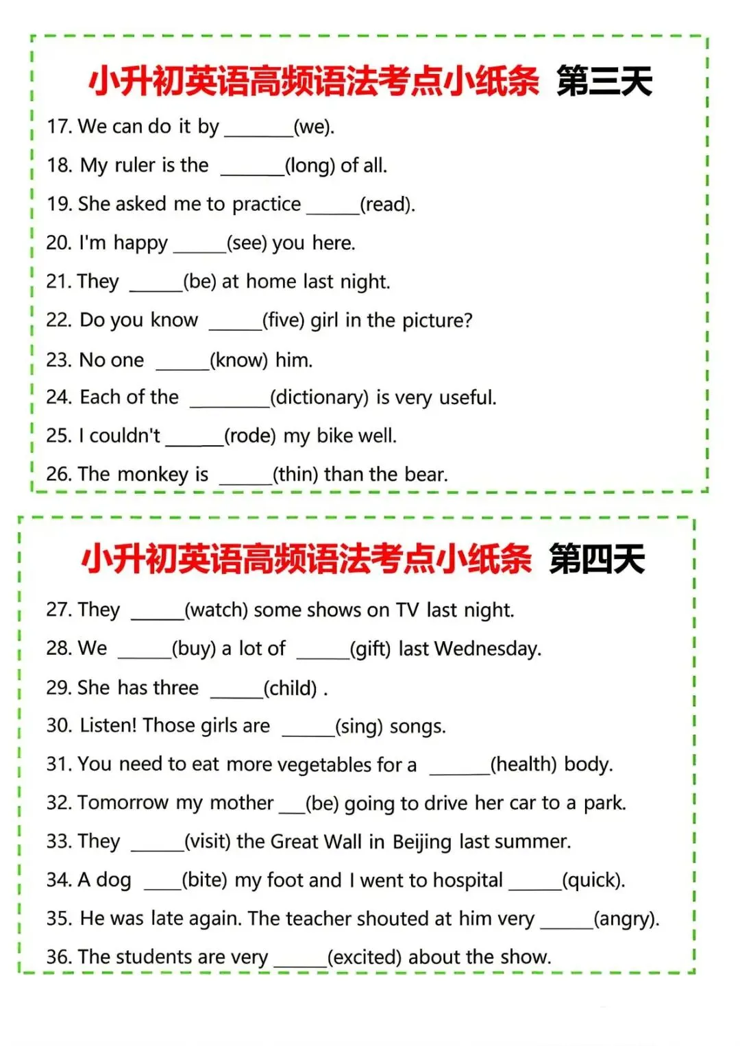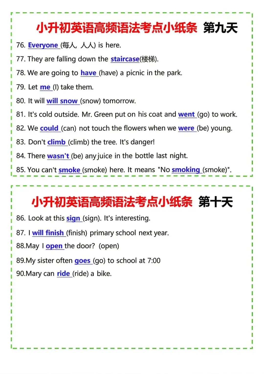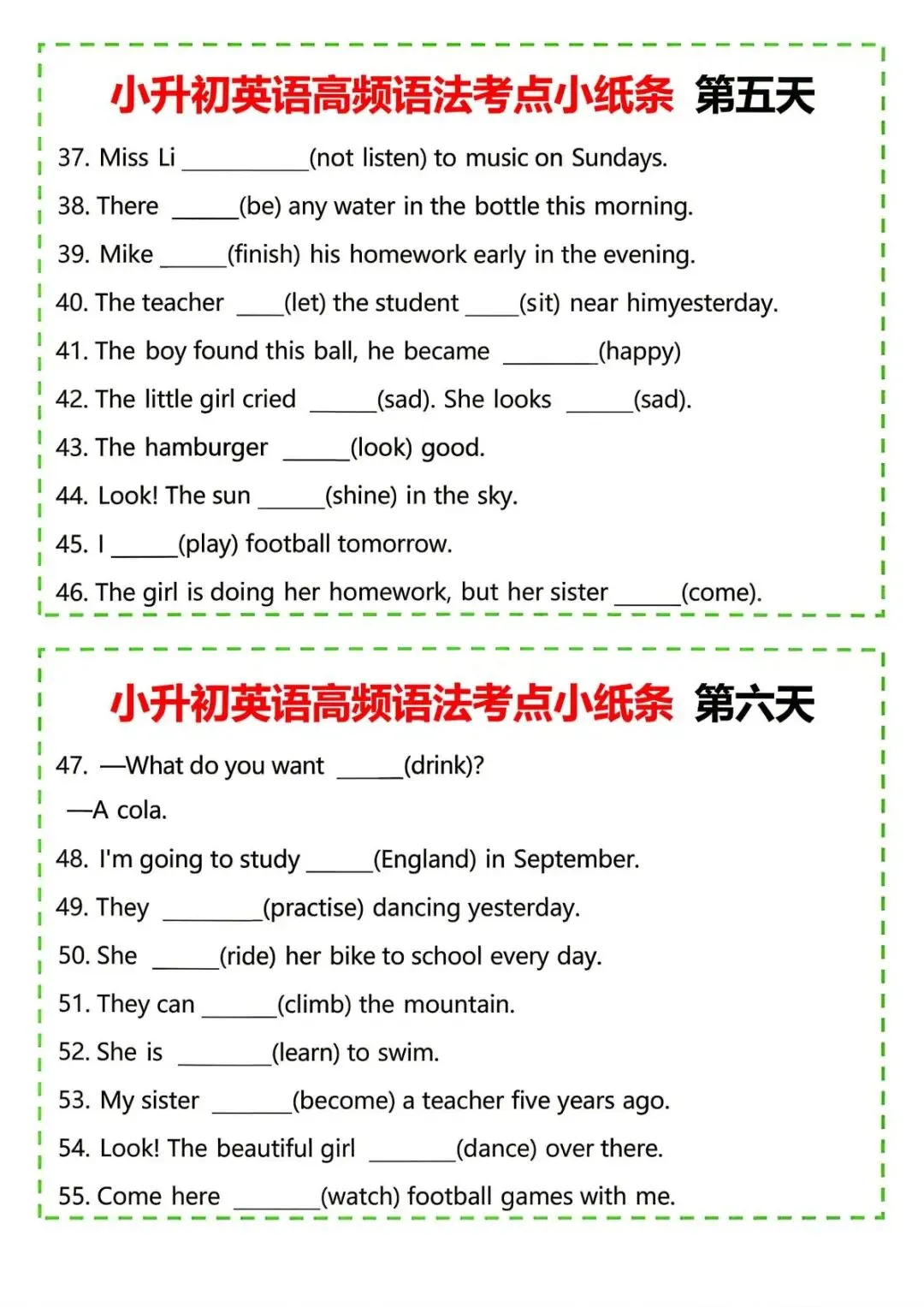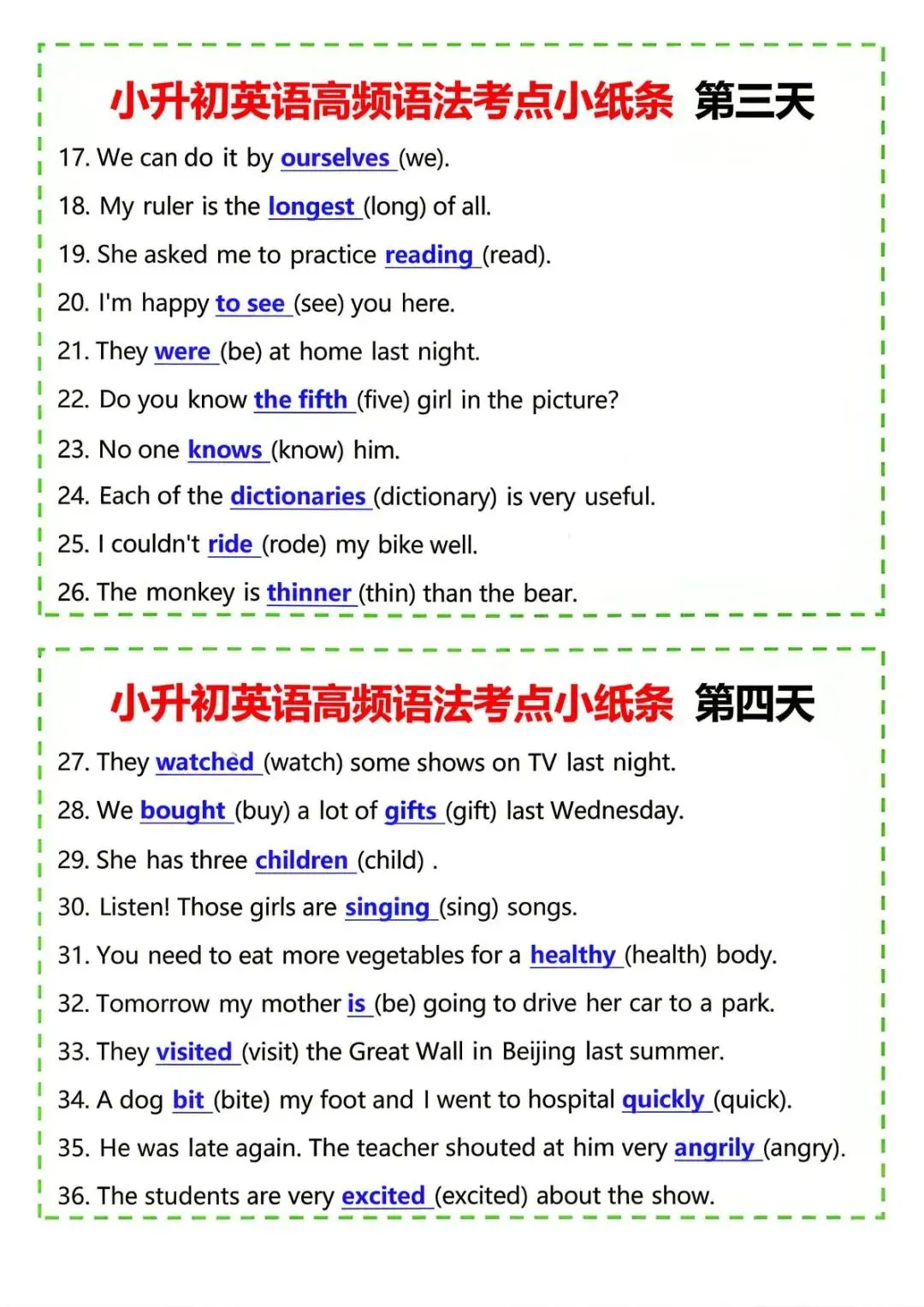 26春六年级下册英语期中复习14天冲刺-电子版可打印