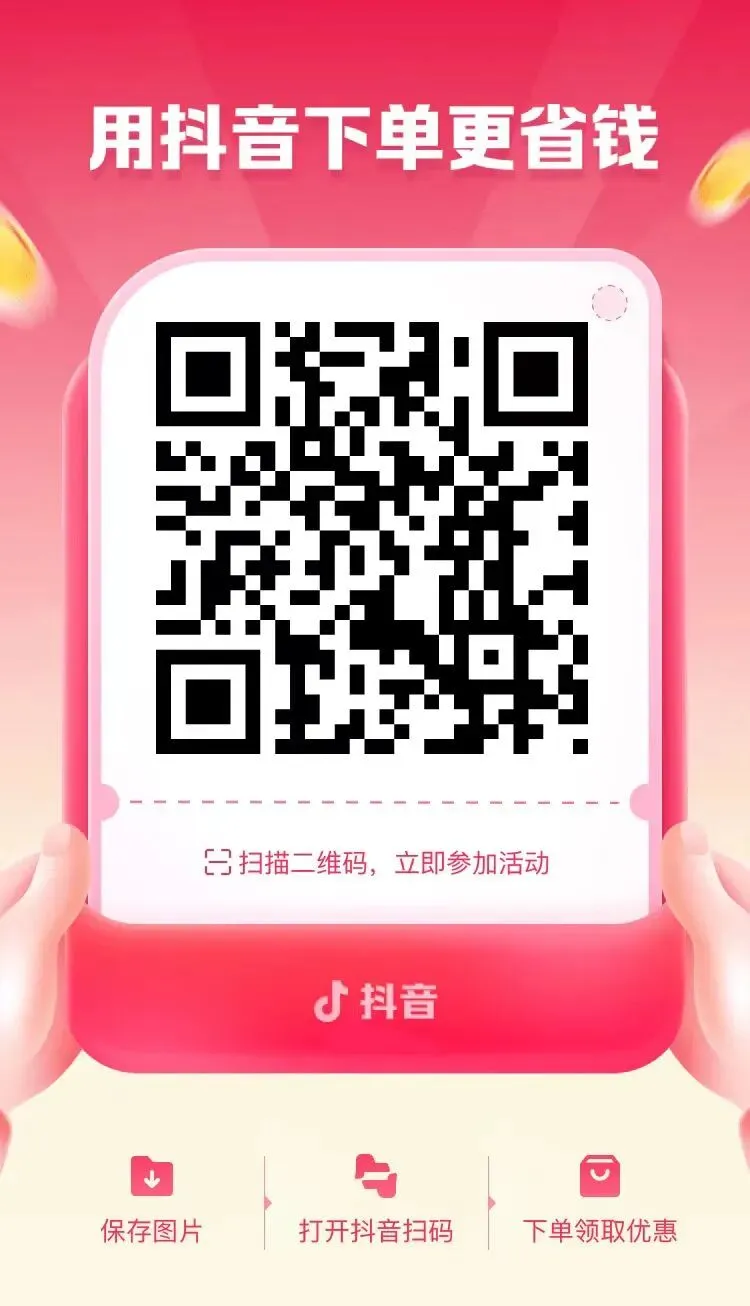 ⭕第二步,保存以下图片,打开抖省省app扫码领券;