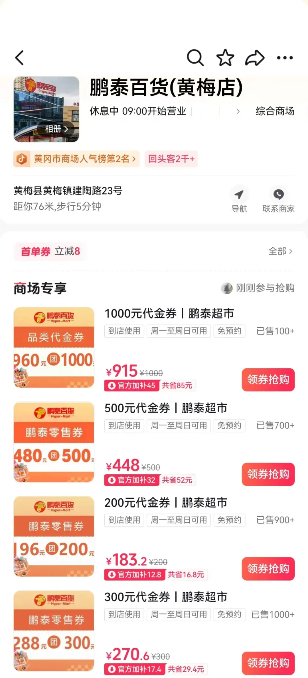 🔥🔥抖音鹏泰百货购物卡最优惠买法来喽: