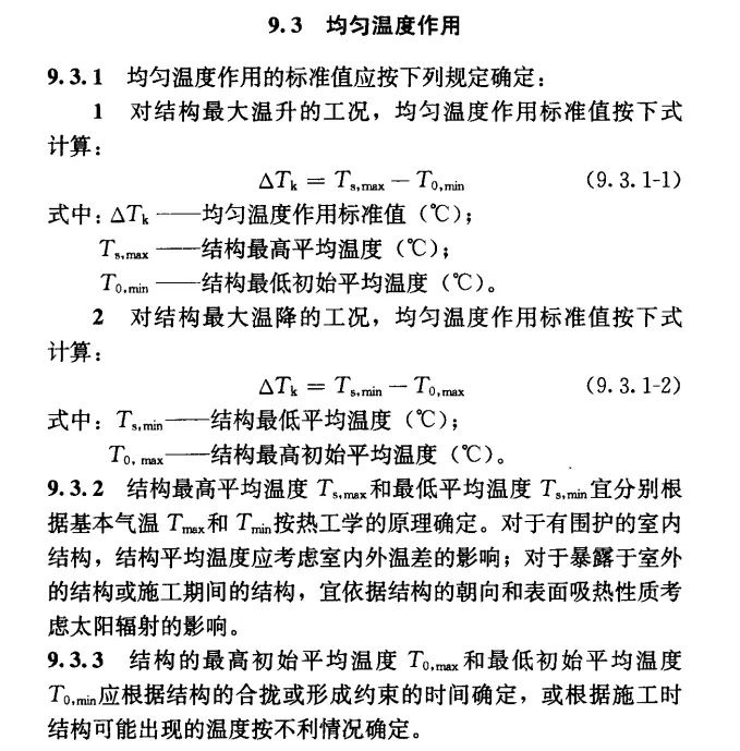 按照《荷载规范》第9.3.1条的规定,对结构最大温升工况,升温温差 = 结构最高平均温度 − 结构最低初始平均温度(取正值);对最大温降工况,降温温差 = 结构最低平均温度 − 结构最高初始平均温度(取负值)。结构的初始平均温度应根据结构合拢或形成约束时间确定,或按施工期间可能出现的不利温度取值。