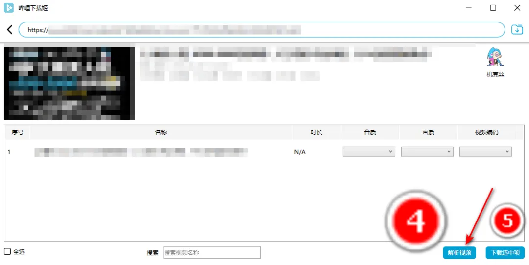 3. 解析下载:回到DownKyi软件,粘贴复制的链接,点击“解析”,选择想要的画质和下载路径,点击“下载”,等待几秒即可完成。