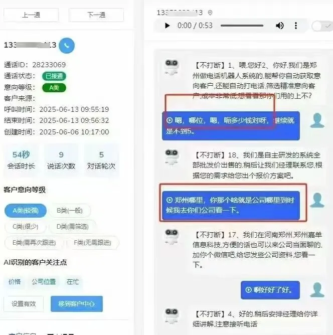 语音识别和自然语言处理,语音合成三大技术支持,使机器人更加理解和健谈,人机交互更加流畅和自然。根据人机交互内容,自动判断客户意图,明确标记客户级别后划入客户信息库,帮助企业锁定准确客户。