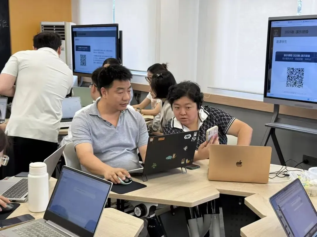 在互动交流环节,陈岚鑫老师以工具实操为核心、以场景应用为导向,带领参训教师进行了沉浸式的智能体搭建体验。老师们在陈老师的指导下,利用雨课堂平台,尝试搭建了“虚拟问诊病人”、“课程知识问答助手”等不同类型的教学智能体。大家积极尝试、踊跃提问,就智能体提示词优化、知识库构建、多轮对话设计等技术细节展开了热烈讨论。