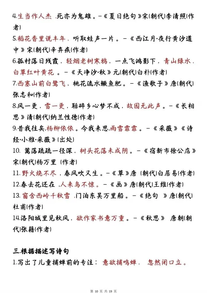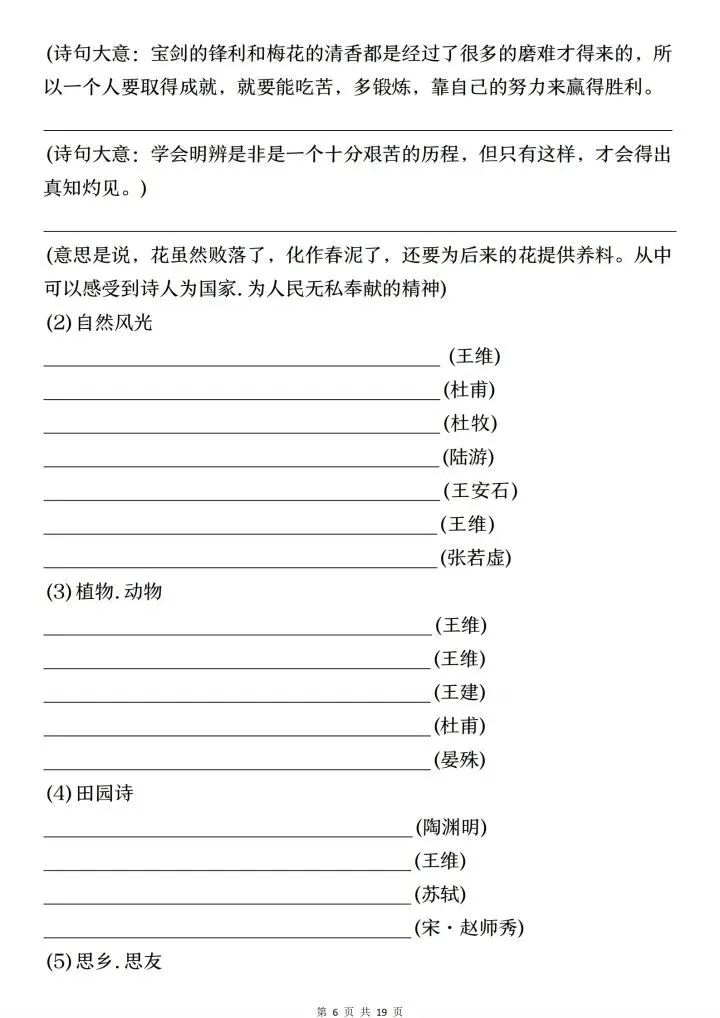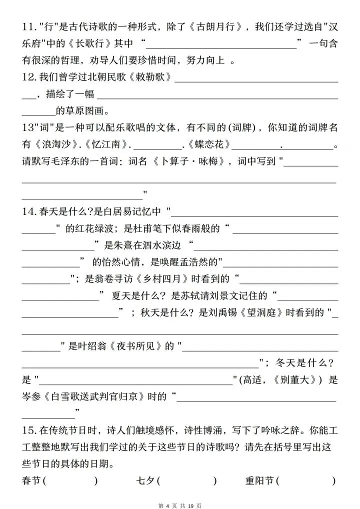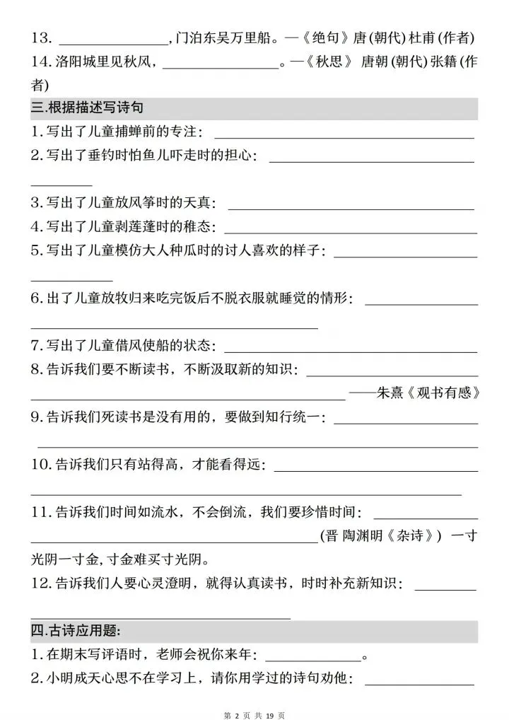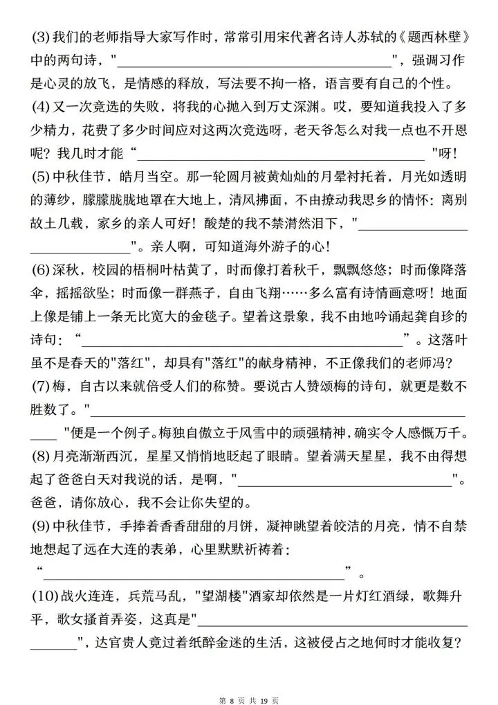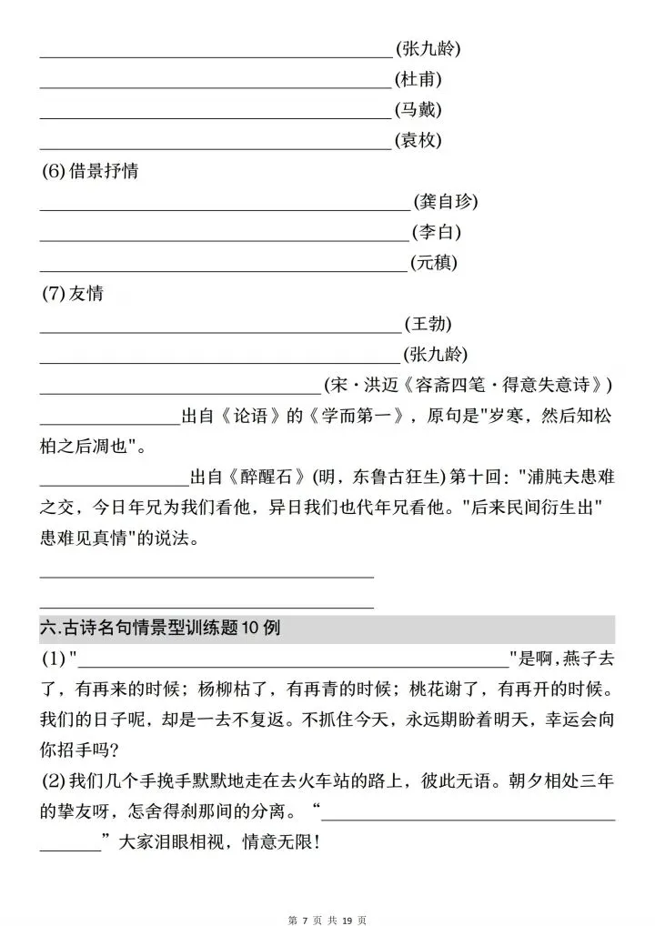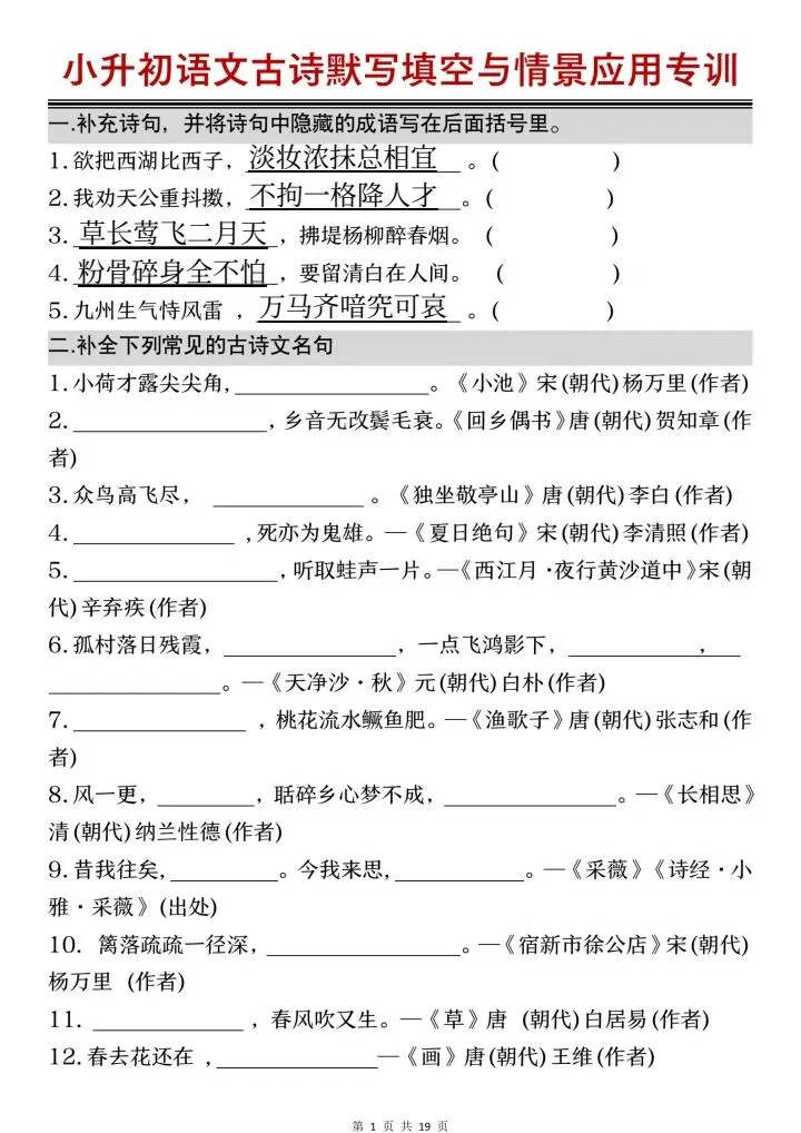 小升初语文古诗文默写填空与情景默写(电子版可打印)