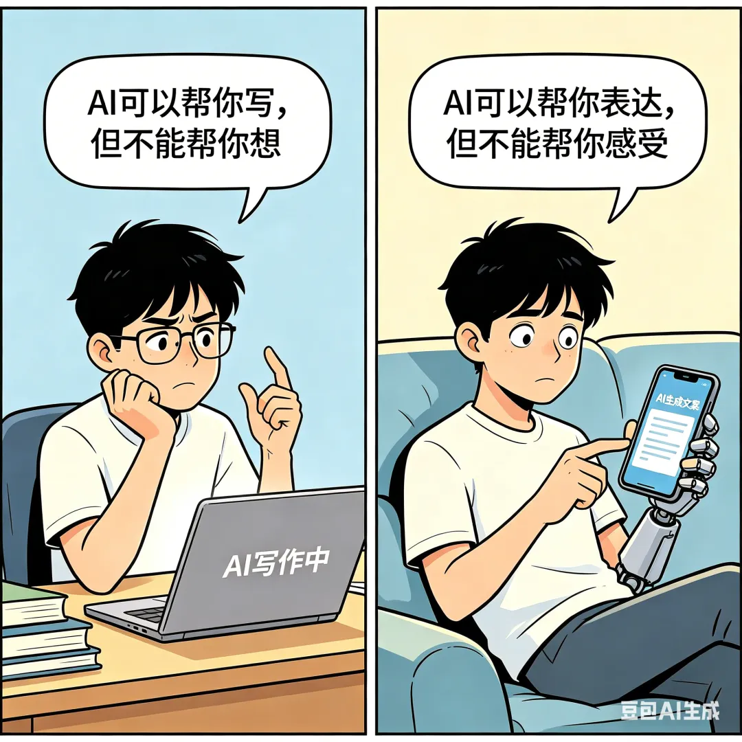 你删掉第一句,重新敲下键盘——那一瞬间,你忽然明白张文宏那句话的意思:AI可以帮你写,但不能帮你想;AI可以帮你表达,但不能帮你感受。