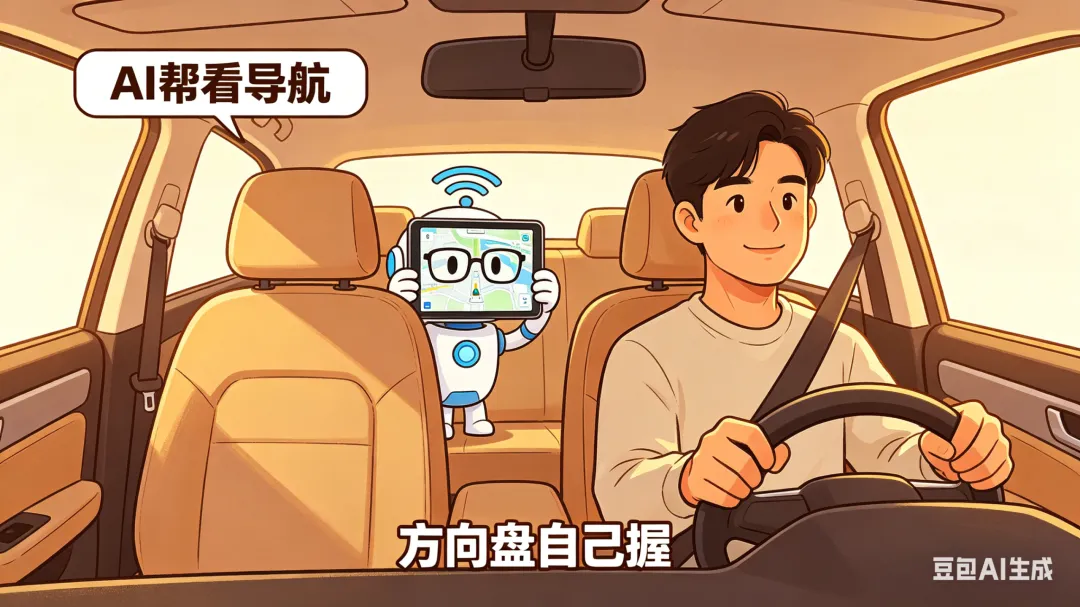 AI可以坐在副驾驶座上帮你看导航,但方向盘,必须握在你自己手里。