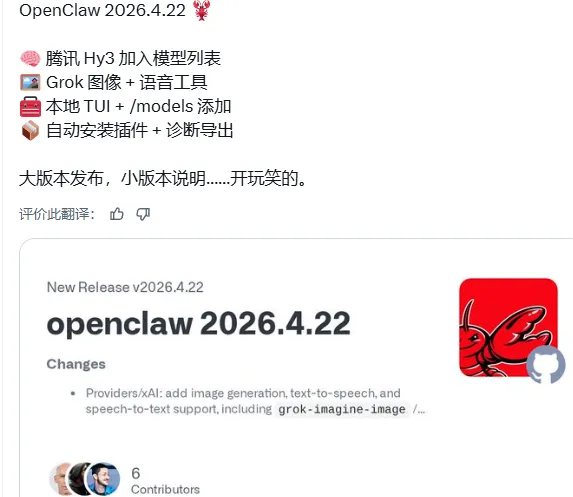 OpenClaw 2026.4.22 重磅更新:全面拥抱 xAI Grok,图像+语音多模态全面爆发!