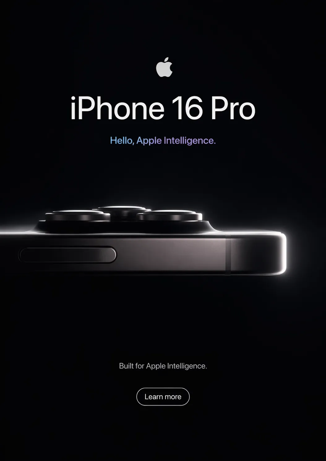 “极简风格科技产品海报、黑色背景、发光边缘、类似苹果发布会”
