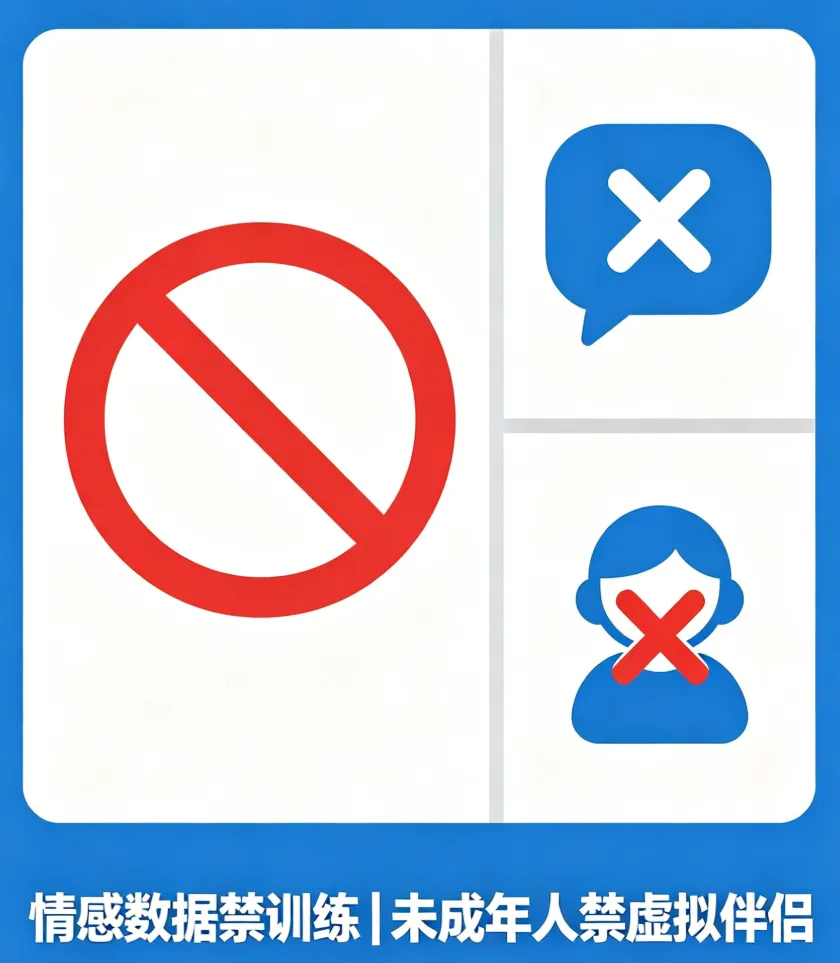 本次规范重点锁定两大核心:拟人化情感交互约束、未成年人权益保护。划出四条硬性监管要求,也是所有情感类 AI 产品,必须死守的合规底线。