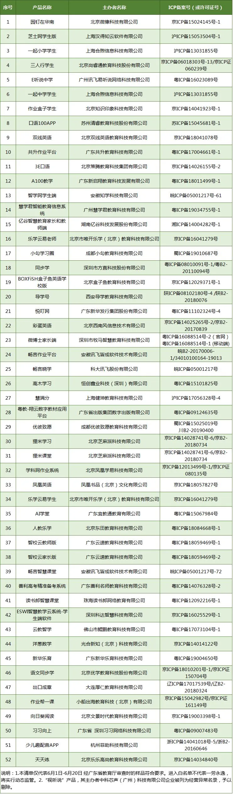 2019年6月1日,《广东省面向中小学生校园学习类APP管理暂行办法》正式开始实施。2019年9月1日起,凡未在广东省教育厅审查通过并列入白名单的校园学习类APP,各地市、县(市、区)教育主管部门和学校等单位不得要求或推荐给中小学生使用。