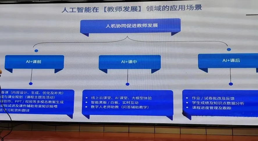 宋老师指出,人工智能不是替代教师的“竞争者”,而是解放教师的“好帮手”。通过“AI+备课”“AI+课中”“AI+课后”三大场景的系统讲解,宋老师展示了AI在教案生成、课件创作、习题设计、学情分析等教学全环节的应用潜力。