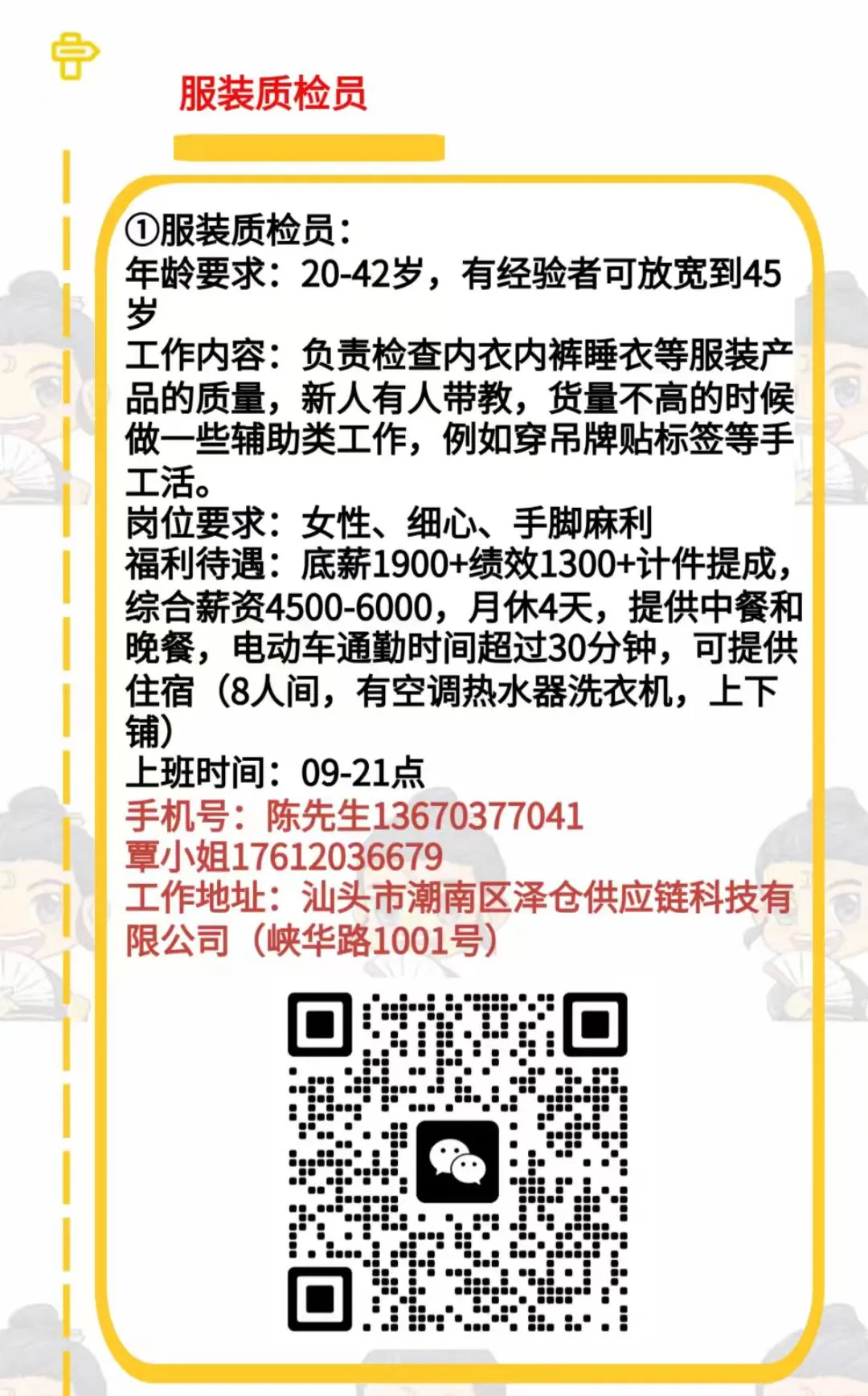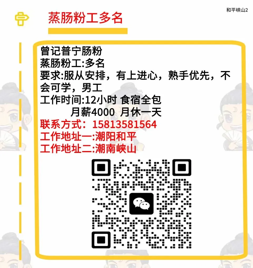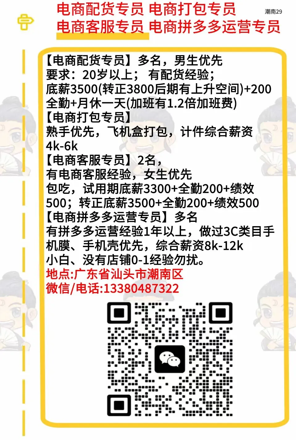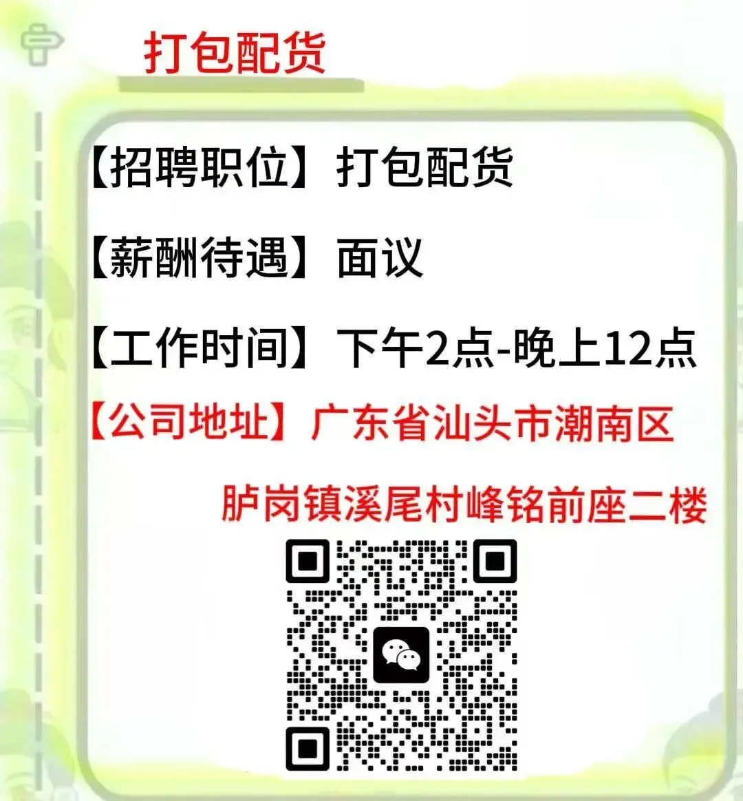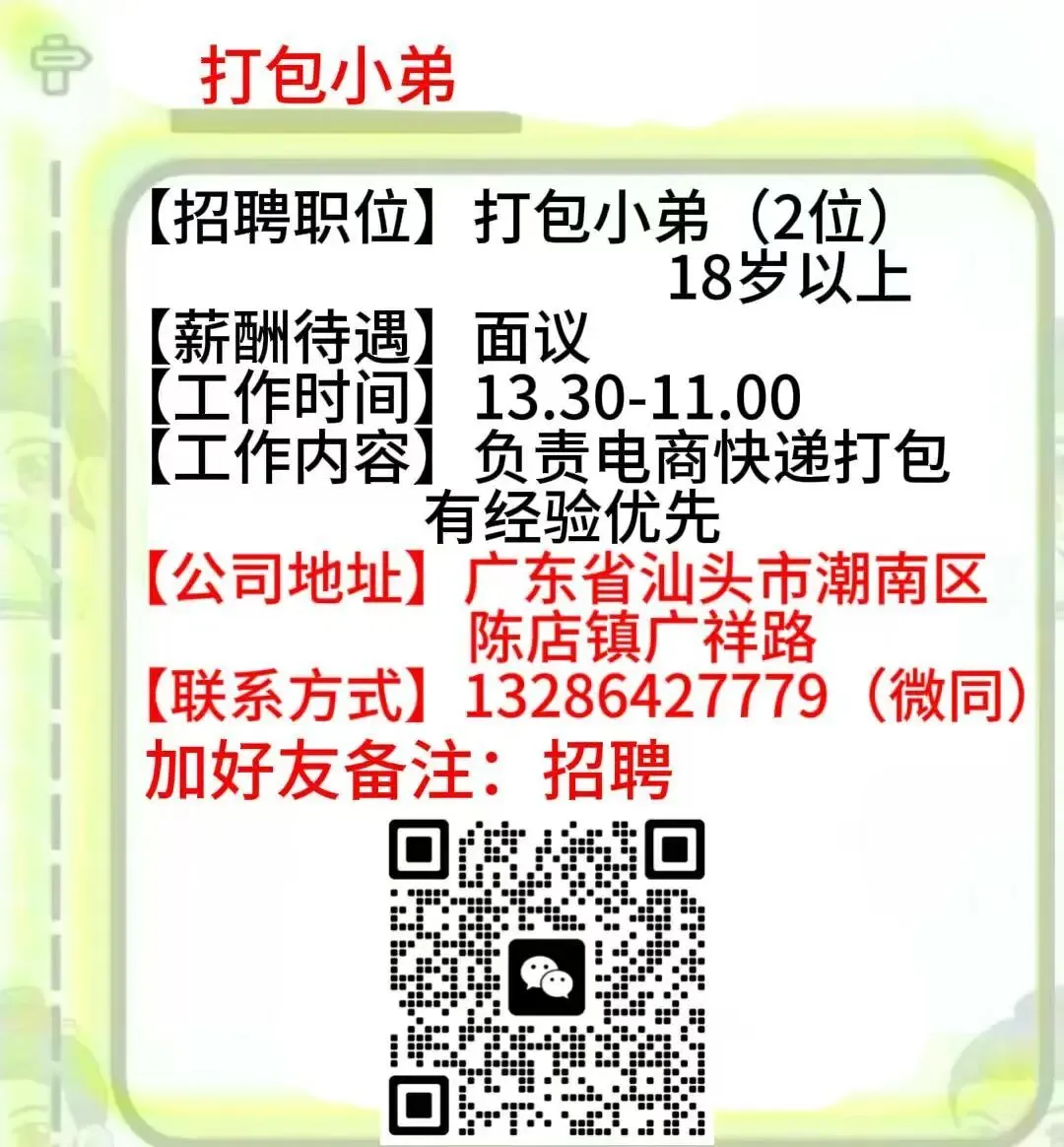 4.24 潮南 各地热门招聘(新招插件、手机充电板测试师傅、缝车平车工、抖音客服、包装、打包小弟、快递业务员、质检)
