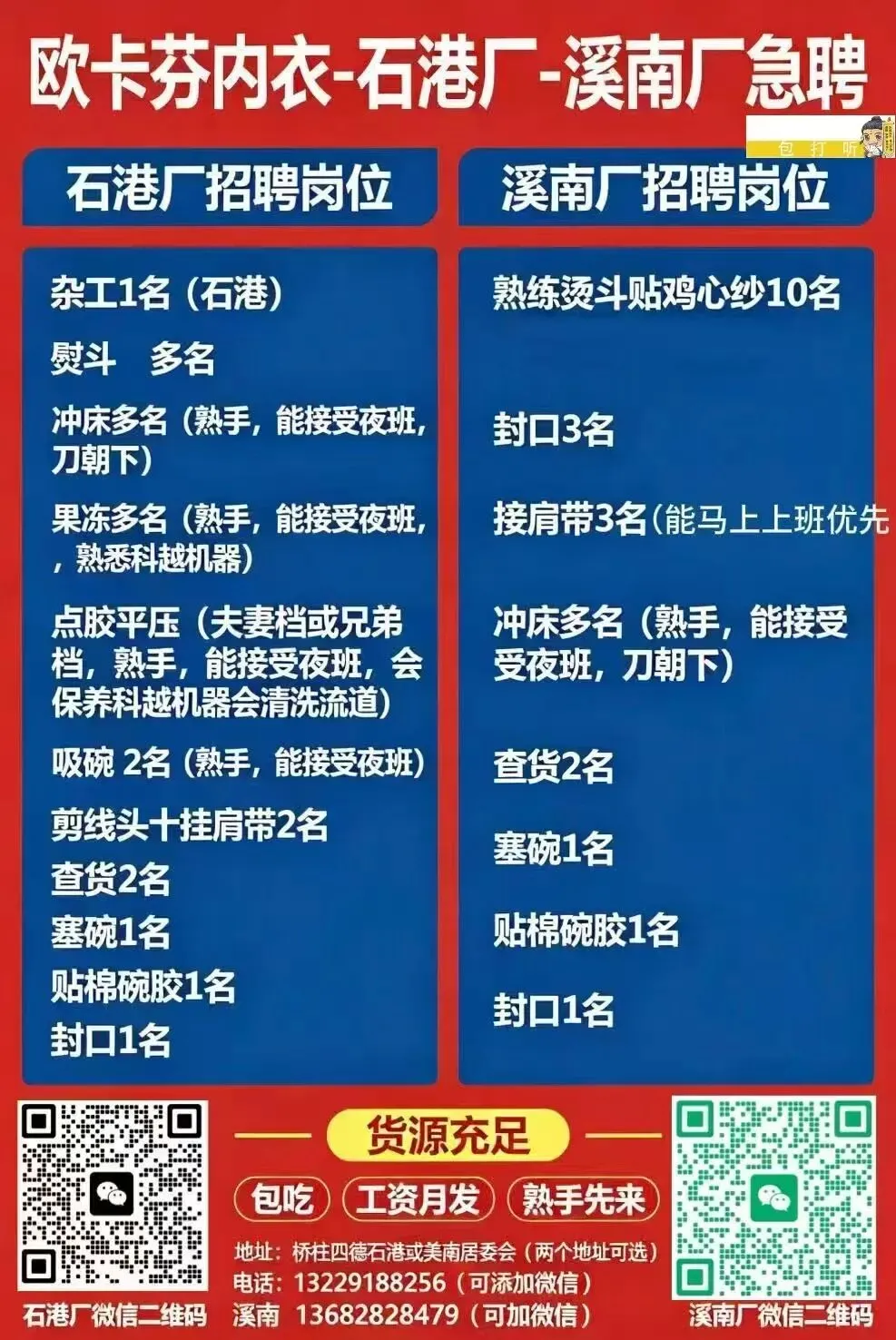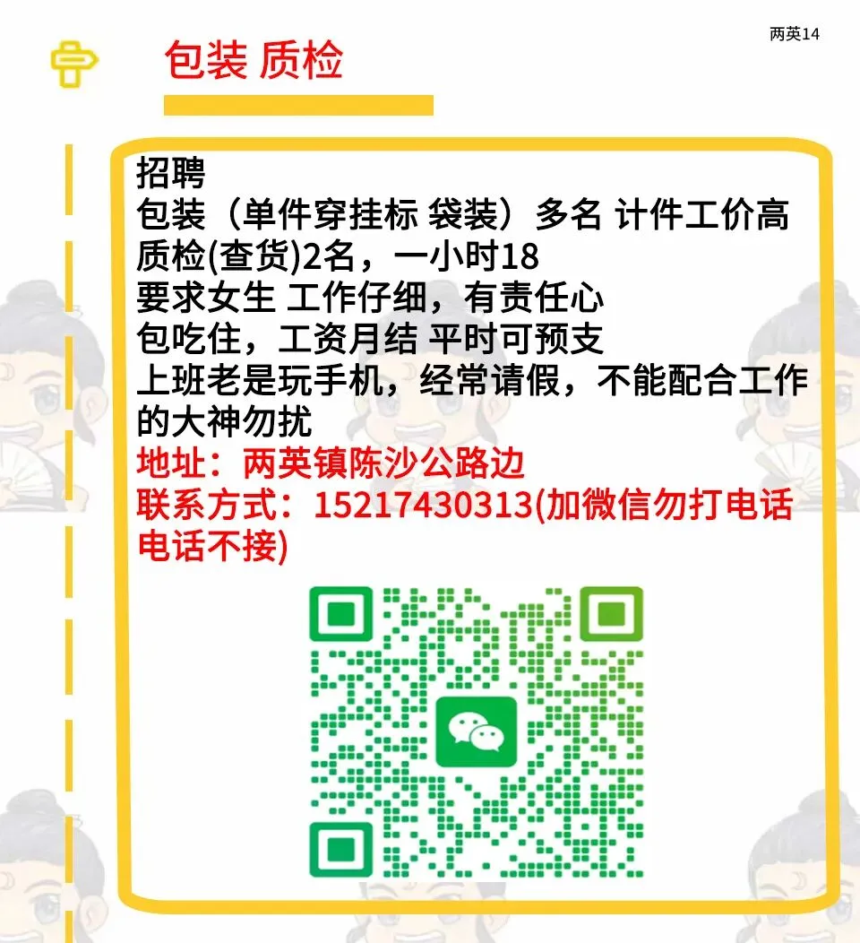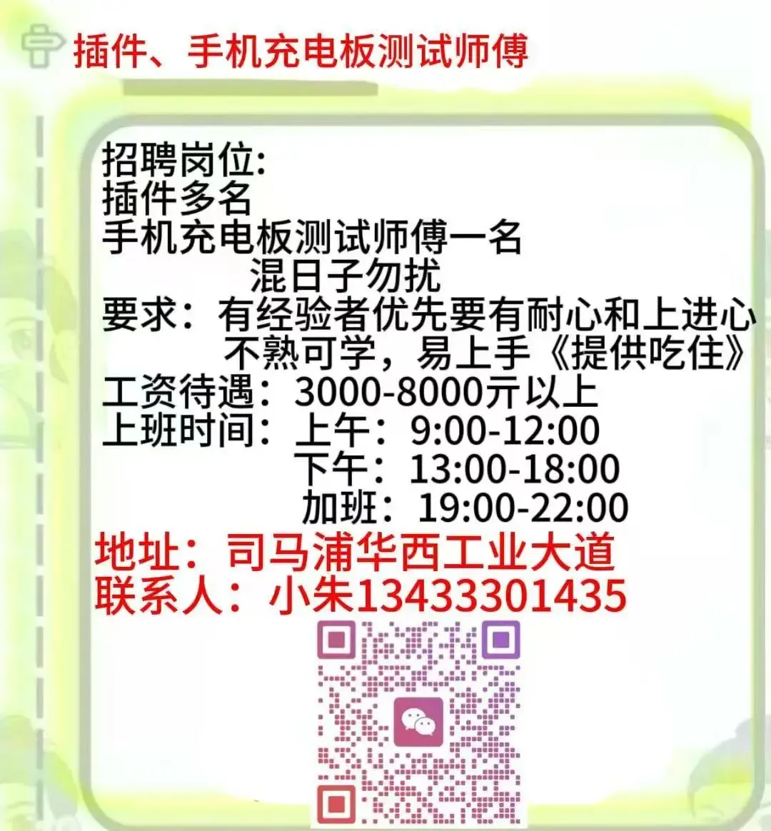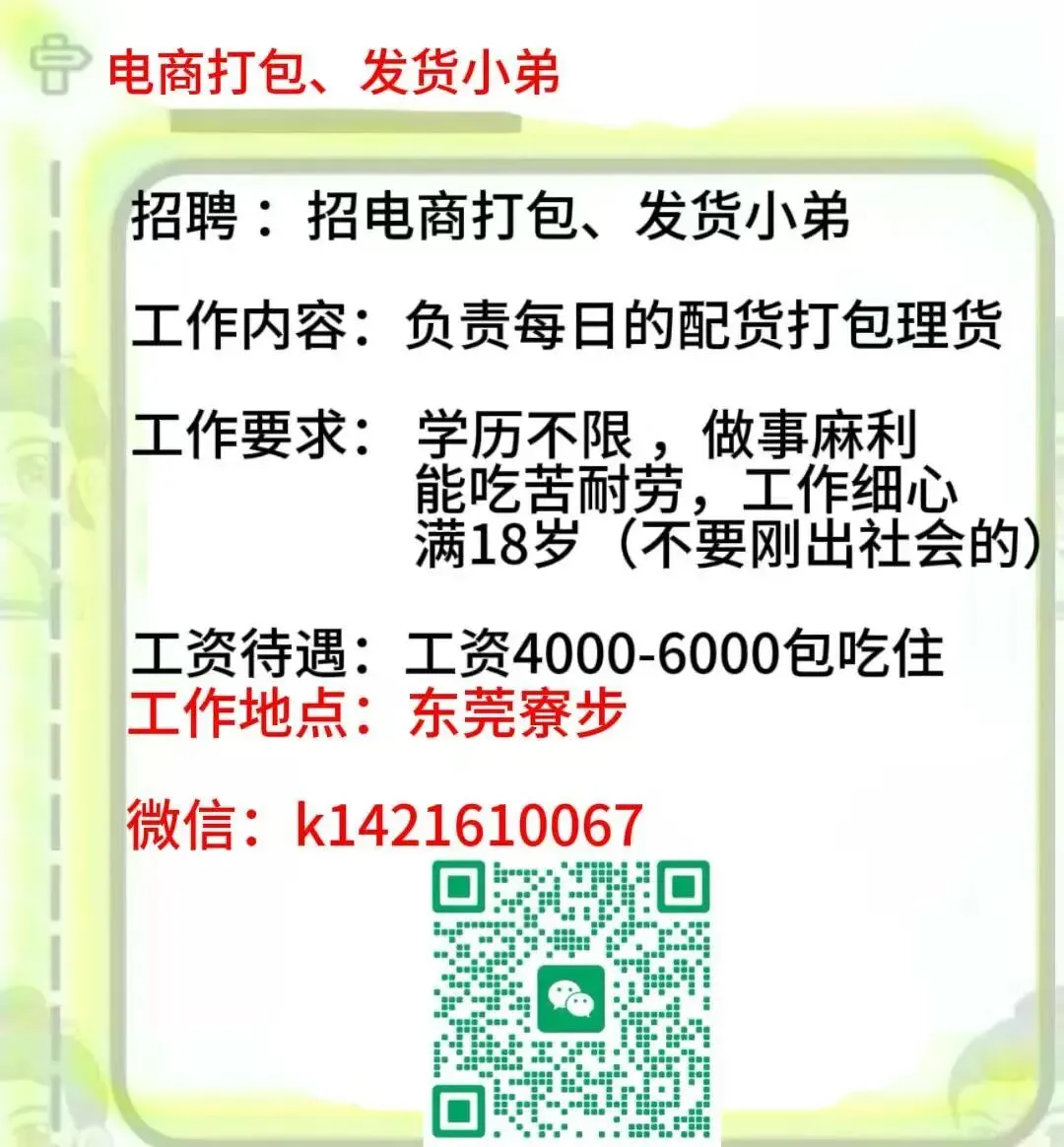 4.24 潮南 各地热门招聘(新招插件、手机充电板测试师傅、缝车平车工、抖音客服、包装、打包小弟、快递业务员、质检)