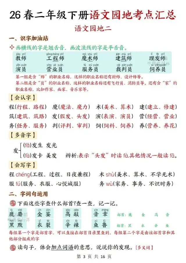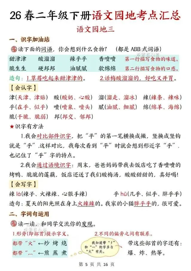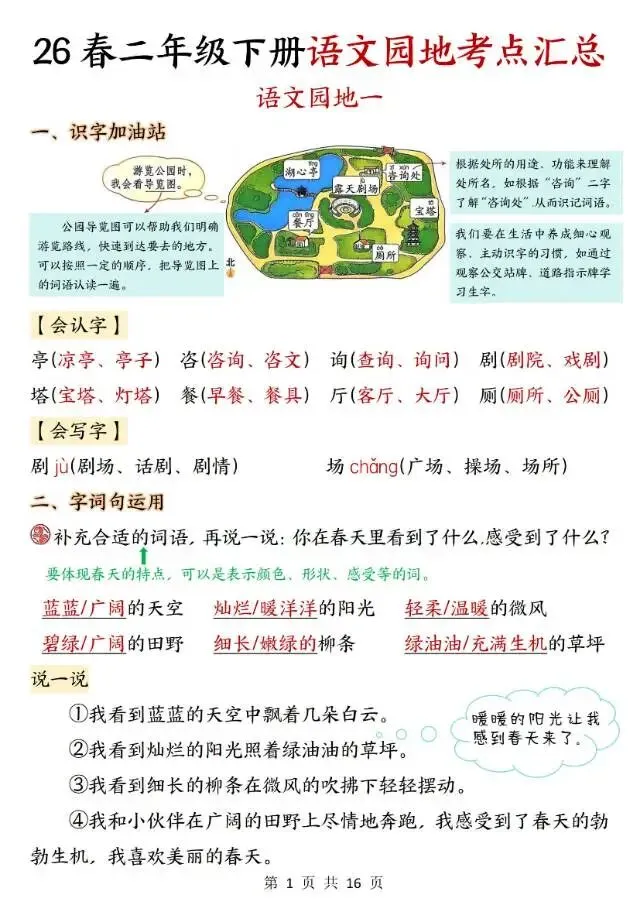 今日分享26春《二年级下册语文园地考点汇总》电子版可打印。需要的家长,赶紧给孩子打印吧!