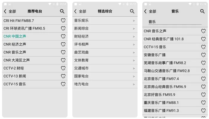 内容覆盖特别广,不管是时事新闻、财经资讯、娱乐段子,还是相声小品、各类音乐频道全都有。摇滚、爵士、民乐、轻音乐等曲风一应俱全,日常听歌、打发时间都合适。