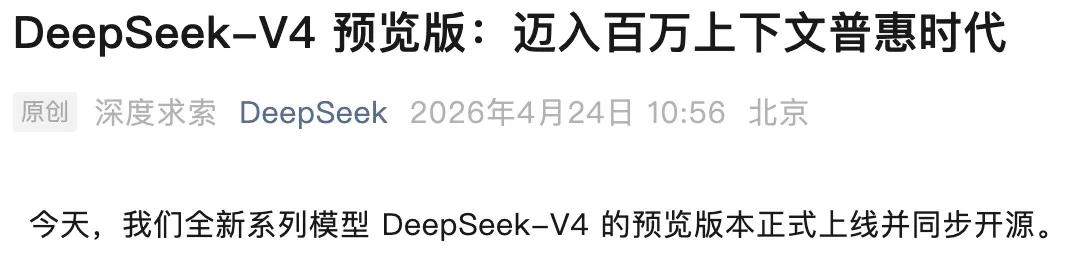 但对于真关心AI界的朋友来说,DeepSeek V4确实是个值得期待的东西。
