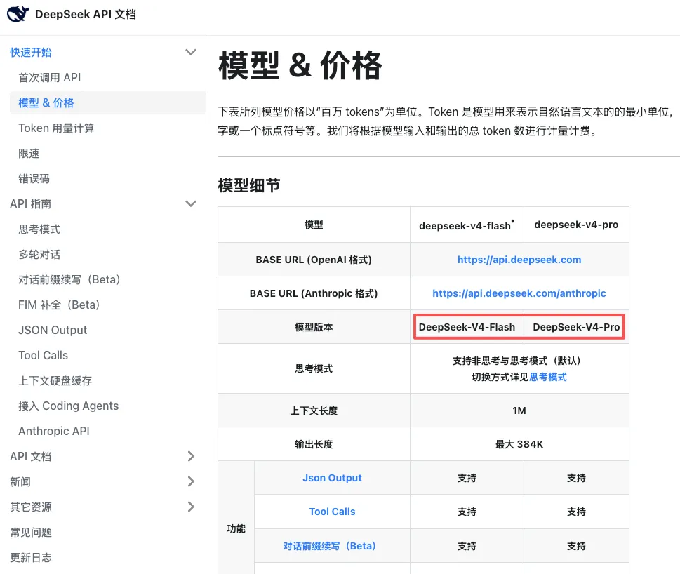 就在刚刚DeepSeek更新了官方文档,AIP支持V4了 就在刚刚DeepSeek更新了官方文档,AIP支持V4了。 目前官网首页还没更新。 DeepSeek V4这次真的来了。想尝鲜的朋友赶紧去试试吧。