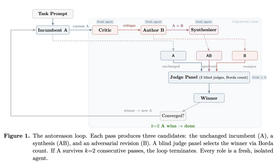 这篇论文提出了一个全新推理方法——Autoreason,正是受到Karpathy的AutoResearch的启发。