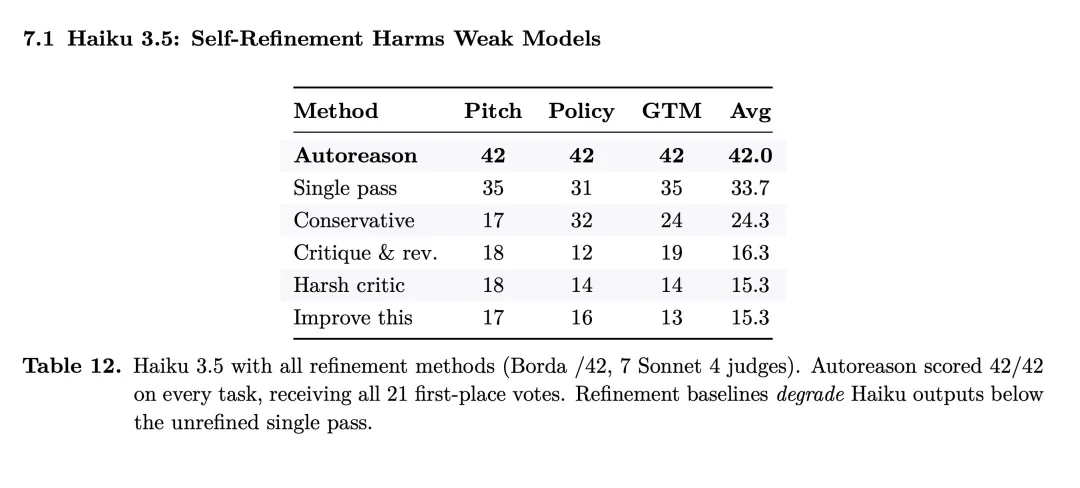 使用Haiku 3.5(成本仅Sonnet的十分之一)配合 Autoreason,产出质量竟与Sonnet 4单次生成持平。