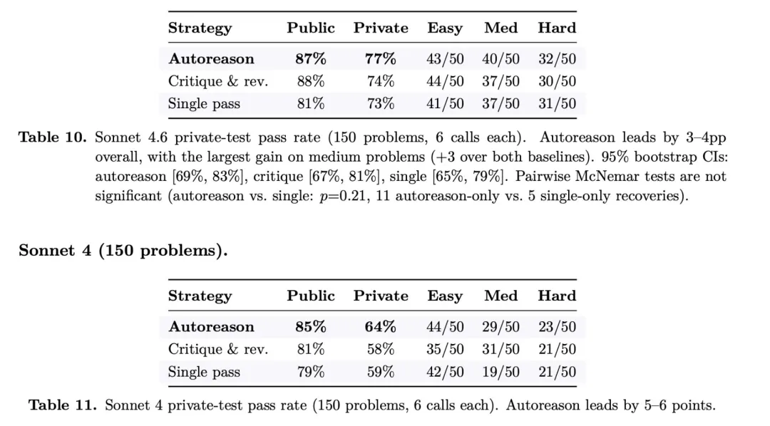 此外,在150个编程难题中,Autoreason的失败恢复率达62%,远高于单次生成的43%。