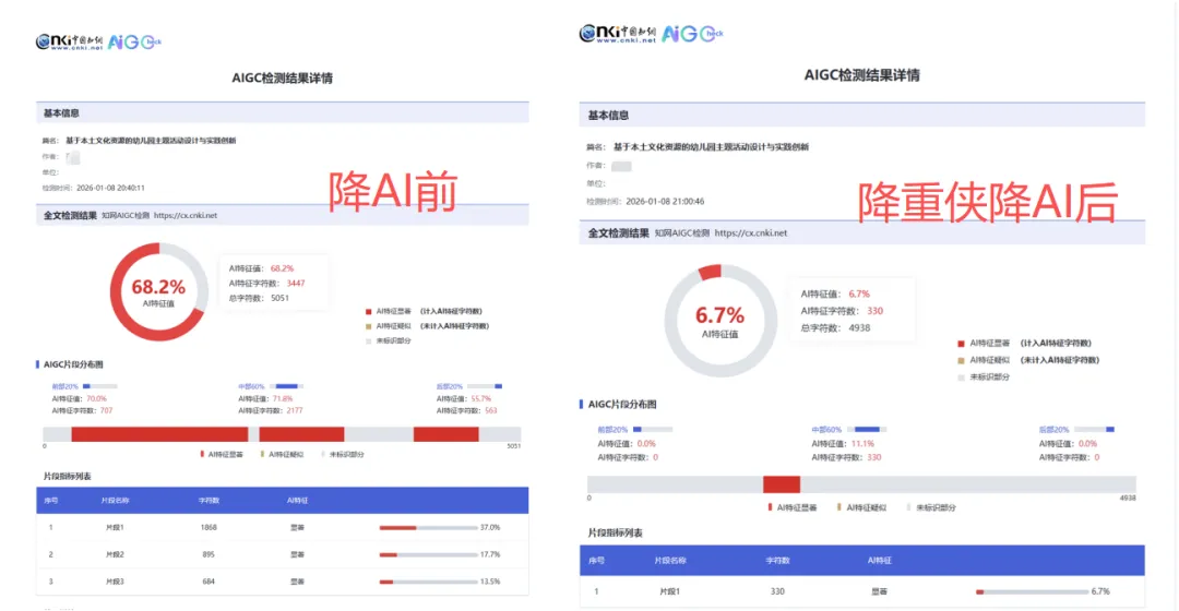 其实总结下来,降AI率工具怎么选?核心就3点:一是降AI率效果稳,能降到安全线以下;二是保留核心观点和专业术语,改完有“人味”;三是安全有保障,不泄露、不乱改格式。而这三点,降重侠AI全部做到了,甚至超出预期。