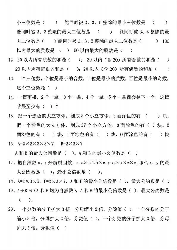 五年级下册数学必考易错题拔高特训(完整电子版可打印)