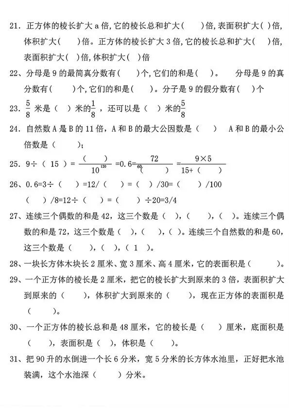今日分享五年级下册数学必考易错题拔高特训(完整电子版可打印)!高清电子版可直接打印,排版规整适配练习,不用费心整理,孩子每日一练夯实基础,家长辅导省心!
