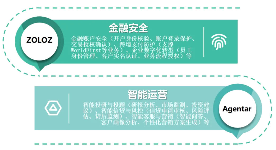 从架构上看,ZOLOZ侧重于数字身份与风控能力的安全底座,确保业务的真实性与合规性,Agentar侧重于在合规数据基础上的业务流程智能化与决策自动化。二者协同构成“安全底座+智能引擎”的产品组合,为金融机构提供从身份核验、风险防控到业务运营与客户服务的一体化AI解决方案。