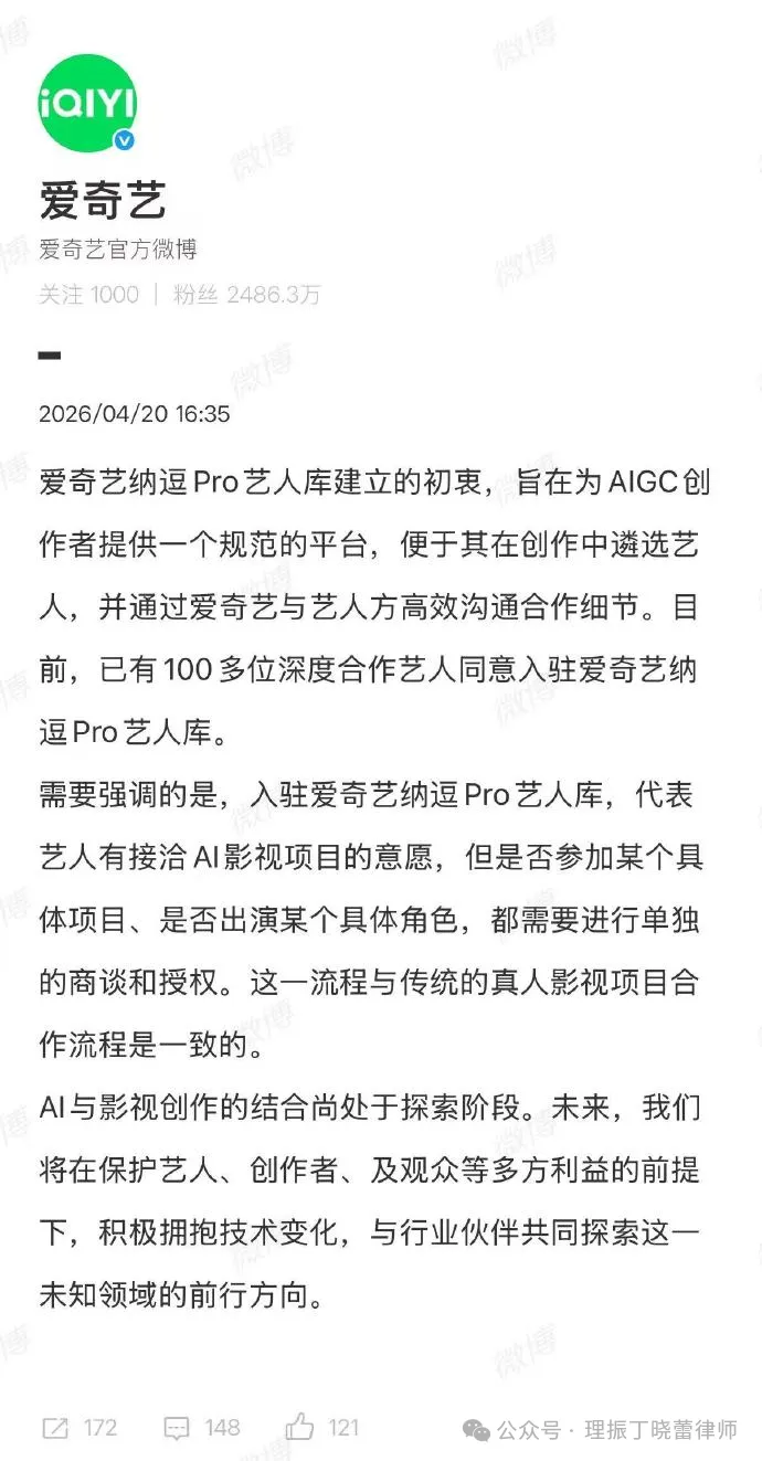 2026年4月,爱奇艺世界·大会上,一个名为“纳逗Pro”的AI艺人库,将长视频平台与AI技术的纠葛推向了风口浪尖。平台宣称,已有超百位艺人授权其AI形象用于影视制作,旨在通过“数字分身”大幅降低内容成本,甚至提出演员可“从一年拍4部戏增至14部”的愿景。