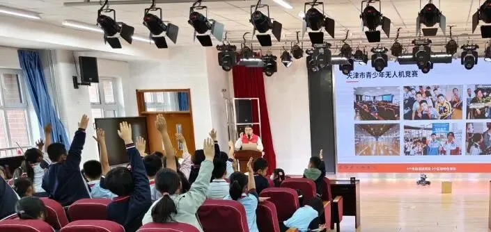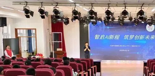 科普讲座由滨海新区科普大使曾孝祥老师主讲,他结合生活中的 AI 场景,用通俗语言讲解人工智能知识,现场互动热烈。曾老师还分享了老一辈科学家的故事,引导同学们厚植家国情怀,树立科创报国理想。